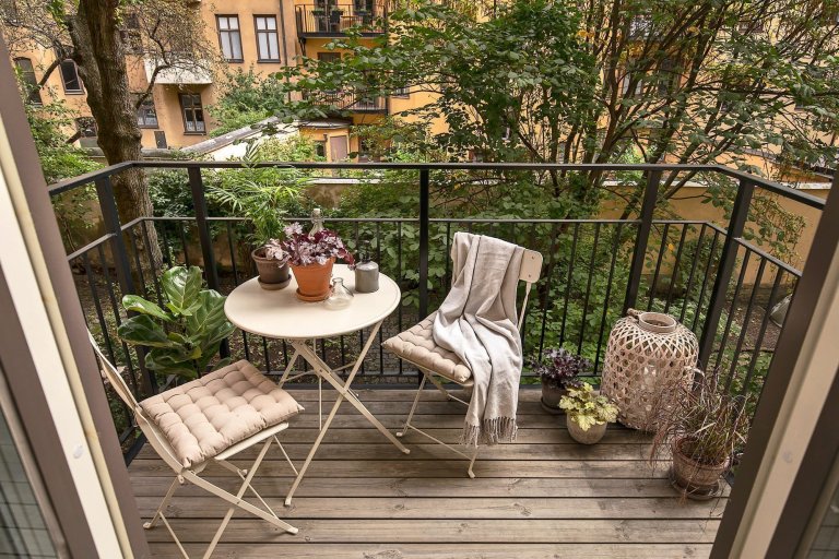 Balkon by měl jít snadno vyčistit. Napadá zemina z květináčů, pyl ze stromů nebo rozlitá káva. Na to je potřeba myslet, pokud zařizujete balkon od podlahy. Stejně jako při renovaci bytu nemůžete zapomenout na malování radiátorů, ani u balkonu nesmíte zapomenout na zábradlí a všechny kovové prvky. Když je balkon připraven, je čas pořídit ten správný sedací nábytek. Užitečné bude lehátko, skříňka, stůl a židle. Samozřejmě je důležité vybrat takový nábytek, který se proporčně hodí. Na velkou terasu můžete klidně pořídit venkovní jídelní stůl, ale pro malý balkon bude nejlepší sklápěcí stolek, který ušetří místo.