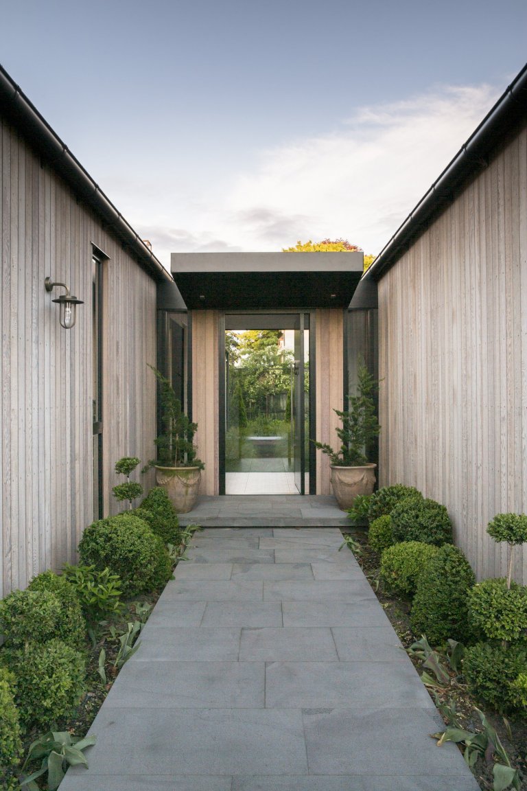 Nový domov se prezentuje jako dvě odlišné štítové formy spojené malým proskleným vchodem. Hlavní křídlo domu směřující k řece je pomocí pilot zvednuto nad zem. Toto řešení tak chrání dům před povodněmi. Druhé křídlo je odsazeno a vytváří soukromý severně orientovaný dvůr se zahradou. Exteriér i interiér domu je plný neustále se měnících krajinných prvků. Působivým oživením tohoto bydlení je zejména vodní prvek plynoucí mezi oběma objemy. Vodní cesta spolu s všudypřítomnou zelení dodává domu svěží výraz. Také interiér je osvěžen řadou velkých prosklených ploch, které zachycují dechberoucí přírodní prostředí. Posuvné dřevěné okenice pak zajišťují tolik důležité soukromí a stínění.