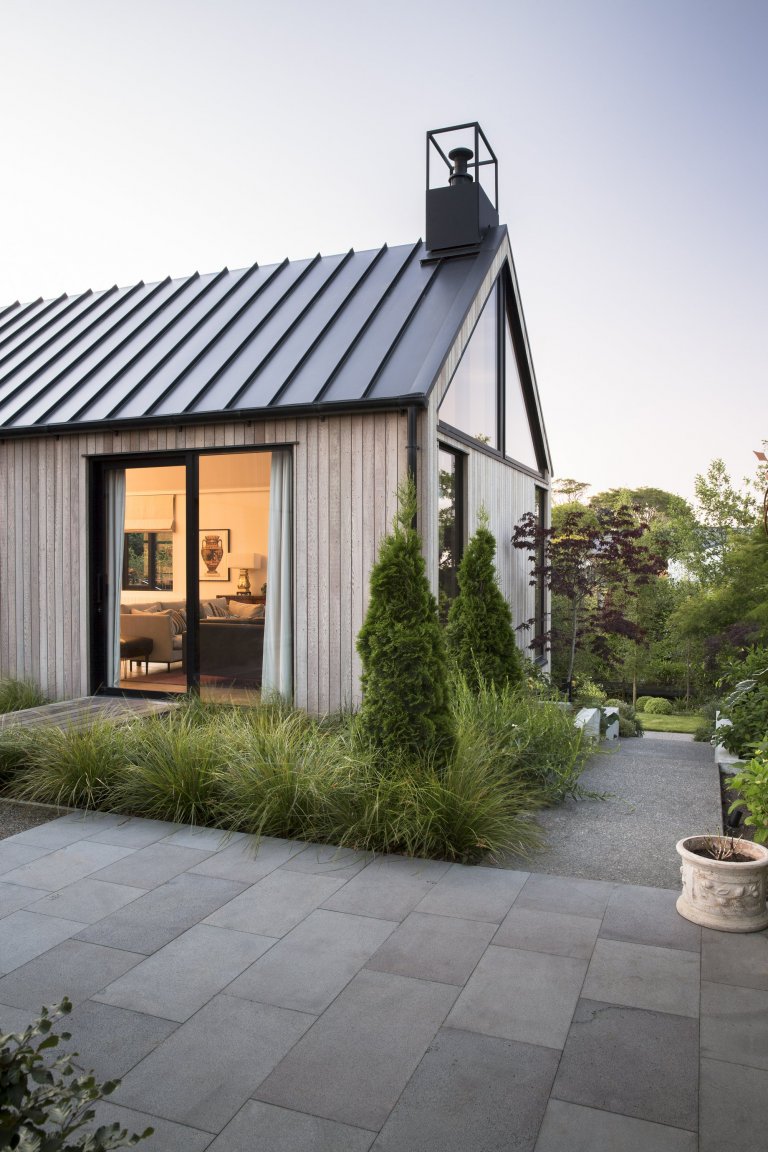 Při pohledu na dům zaujmou cedrové obklady i gabionové koše naplněné říčními kameny. Černá ocelová střešní krytina kontrastuje s přírodním cedrovým dřevem, servisní stranu domu ukrývá schránka z betonu. Interiér domu je plný přirozeného světla a bohatých výhledů. Ačkoliv je zařízen v moderním stylu, jeho charakter výraznou měrou spoludotváří řada rustikálních prvků. Nový domov tak působí velice osobitým stylem, který návštěvníky vrací do starých časů.