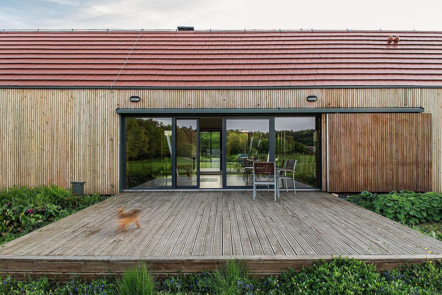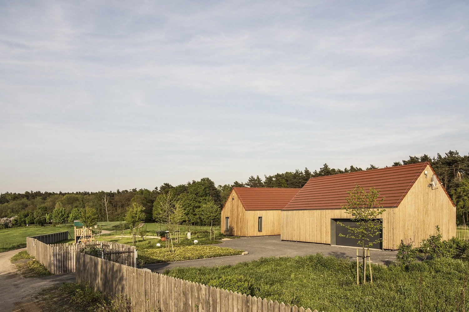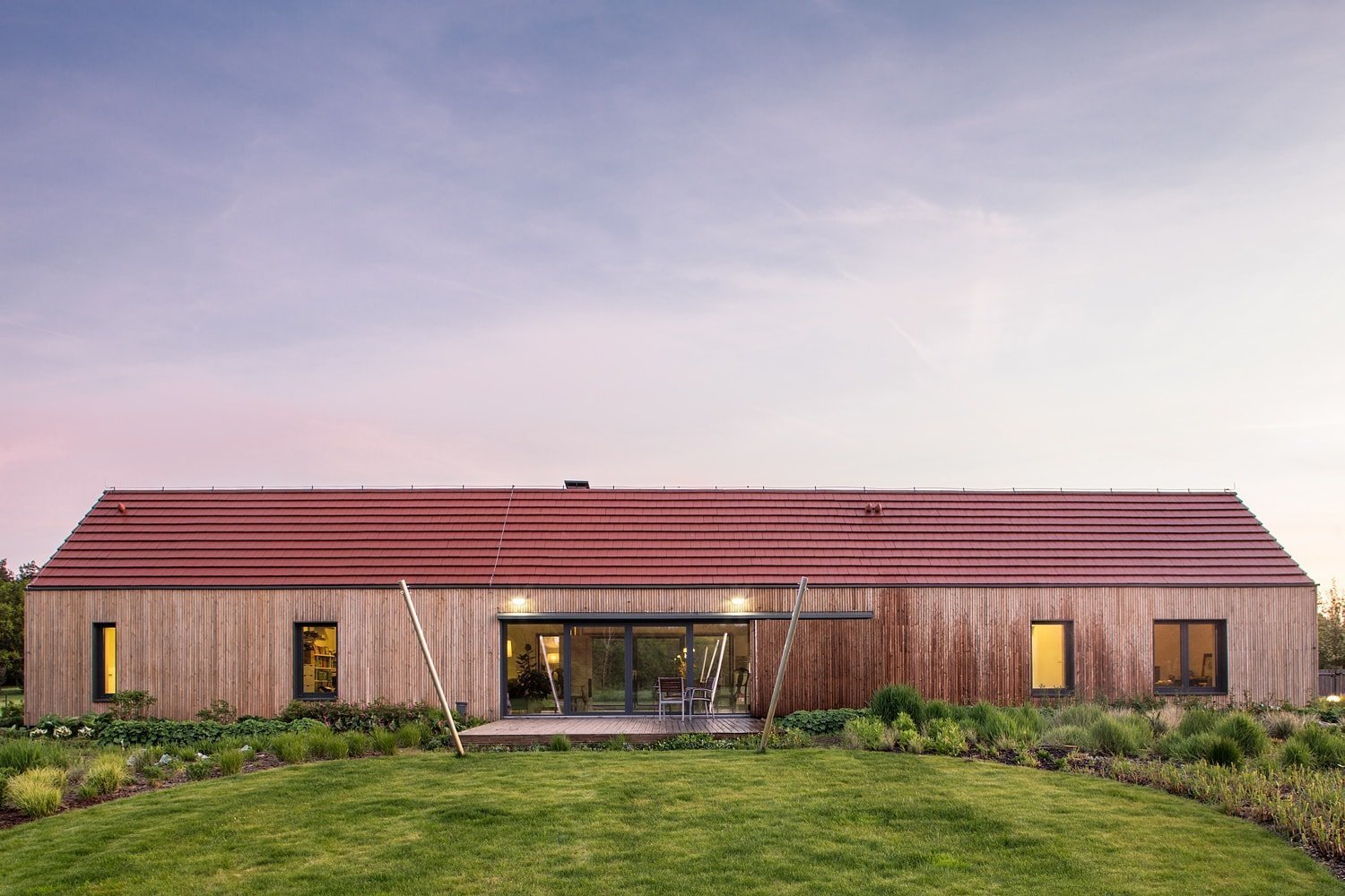 Dům (postaven v roce 2016) nám svým vzhledem může připomínat dřívější venkovské obydlí, což je způsobeno hlavně umístěním a tvarem obou budov. Celý dům je postaven tak, aby směřoval co nejvíce ke slunci. Díky tomu se do většiny interiéru dostane dostatečné množství přirozeného denního světla. Aby se dosáhlo symetričnosti domu bez zbytečných překážek (což si oba majitelé přáli), byla jako konečná podoba domu zvolena jednopodlažní stavba.