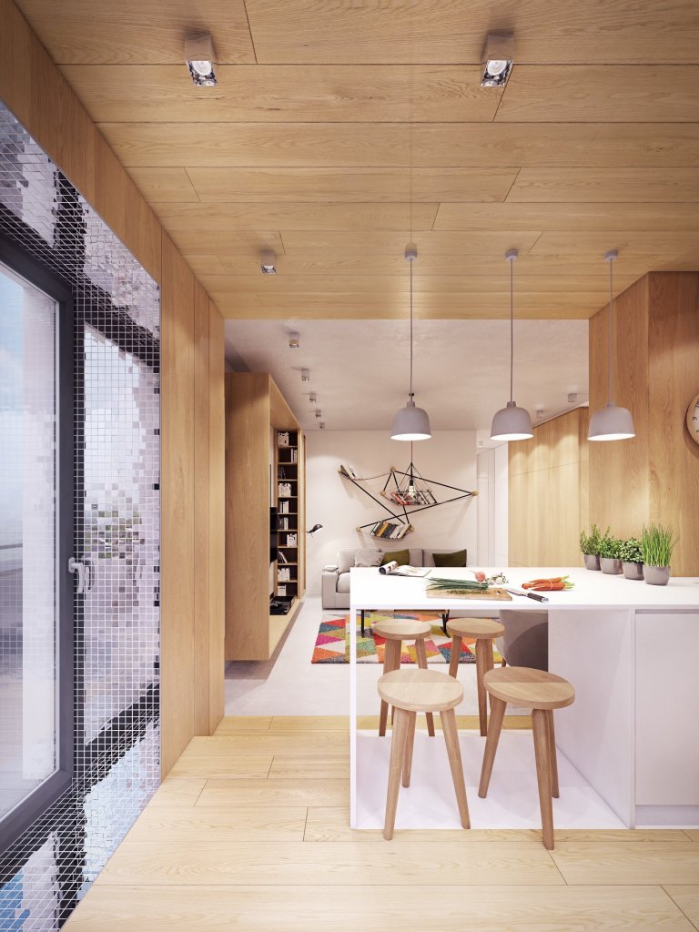 Architekti ze studia Plaste(l)lina ukázali, že umí pracovat i s netradičním rozložením prostorů, tak jako je tomu právě u tohoto bytu. Výsledkem jejich snažení je vesele působící byt, v němž se jeho obyvatelé jistě cítí dobře. Byt se rozkládá na pouhých 73 metrech čtverečních.