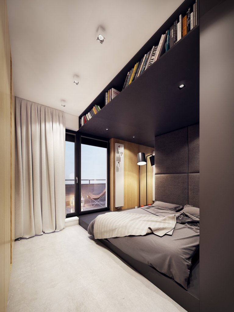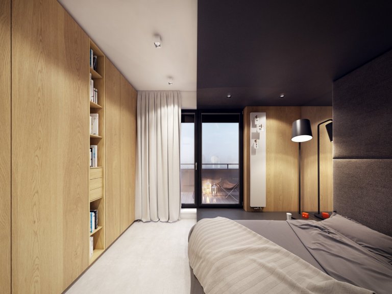 Velmi úzká ložnice donutila architekty, vytvořit přístup na postel pouze z jedné strany. Lůžko uzavřené v grafitovém baldachýnu s měkkou čelní deskou se stalo velmi útulným koutkem. Dětské pokoje jsou navrženy tak, aby tvořily společný prostor, kdykoliv rozdělitelný díky posuvným dveřím. Pokoje jsou udržovány v poměrně neutrálních barvách, což je umožňuje přizpůsobit preferencím dětí. Barevné detaily ve formě postelí, polštářů nebo hraček pokoji dávají správný charakter.