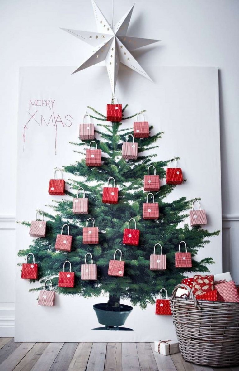 Pokud chcete při výběru alternativy klasického stromku ušetřit především čas, zvolte variantu bílého plátna, na které nakreslíte stromeček nebo jen jeho obrys a necháte ho dotvořit třeba dětmi. Poté stačí ho jen napnout nebo zavěsit na zeď a doplnit ho třeba vánočními světýlky nebo jinými dekoracemi, které na něj připevníte špendlíky či jinak. Takový stromek má kromě nenáročnosti na prostor i další výhodu. Po svátcích ho stačí jen srolovat a uschovat na příští rok.