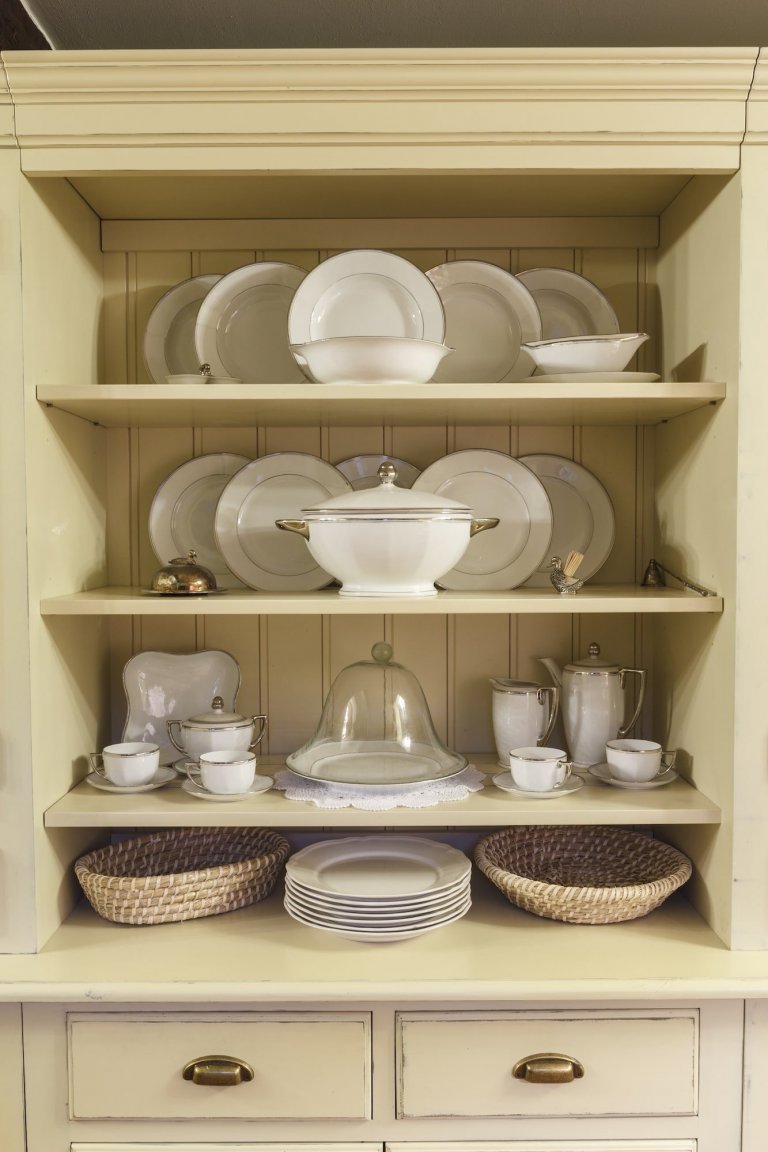 Jakmile veškeré vybavení získalo nový háv, bylo třeba jej trochu přizpůsobit starým dobrým časům. Právě patina je totiž zásadním prvkem provensálského stylu. Z tohoo důvodu je nábytek spolu s dveřmi do spíže záměrně povrchově upraven tak, aby evokoval dojem letitého užívání, ale přesto působil stylově a čistě. Nábytek se tedy nejprve natřel hnědozelenou barvou a poté přišlo na řadu několik nátěrů v barvě vanilky. Nakonec se povrch zbrousil způsobem, aby základní barva na některých místech jemně prosvítala.