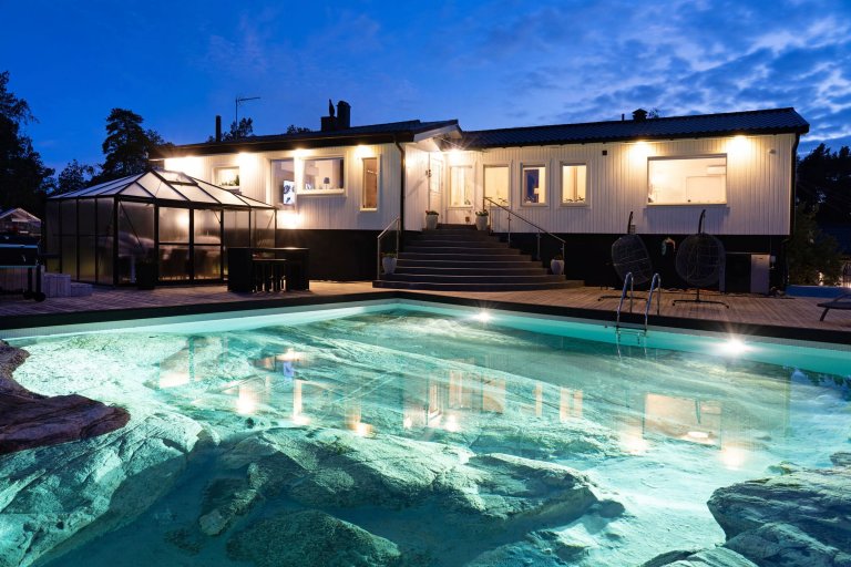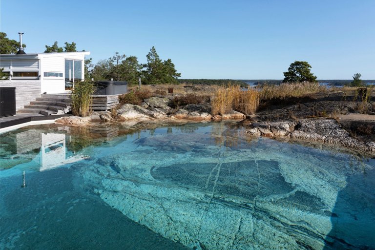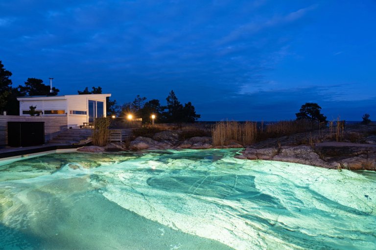 Poblíž přírodní rezervace Sandholmarnas ve Švédsku se nachází luxusní rezidence, která na první pohled upoutá fantastickým přírodním bazénem ve skále. Je odtud překrásný výhled na Stockholmské souostroví a k domu náleží také kotviště u jezera Dyviksmaren.