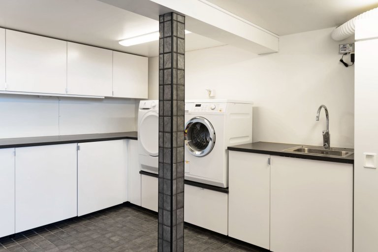 V suterénní části domu se nachází velká prádelna s dlážděnou podlahou a podlahovým topením. Je vybavená pračkou, sušičkou a sušicí skříní. V prádelně je také tepelné čerpadlo se systémem vzduch-voda, které ohřívá dům i bazén. Součástí tohoto luxusního bydlení jsou rovněž vinné a potravinové sklepy. Zajímavým architektonickým osvěžením exteriéru je oranžerie, skleněný domek, který během chladných večerů poskytuje krytý jídelní kout. K dispozici je také sauna a vířivka, které zajišťují dokonalé soukromí. K rezidenci rovněž náleží vyhřívaná dvougaráž. Součástí rezidence je ještě další dům s obývacím pokojem, kuchyní, ložnicí a koupelnou. Objekt má vlastní vrtanou studnu. Dominantním a naprosto úchvatným prvkem je přírodní bazén ve skále, který svádí k zábavě i odpočinku. Odkazuje na divoký charakter okolní krajiny a poskytuje svým majitelům opravdu originální způsob osvěžení. Disponuje pískovým filtrem a chlorátorem soli. Terasa kolem bazénu poskytuje dokonalý prostor určený pro setkávání rodiny a přátel.