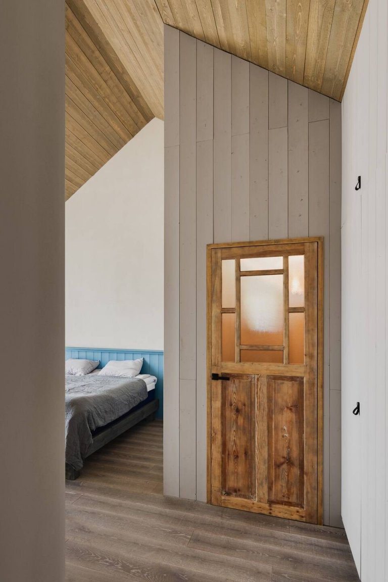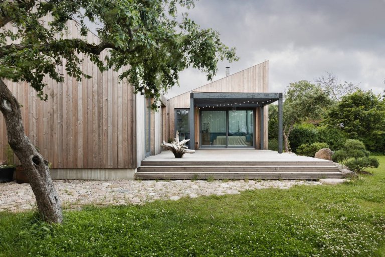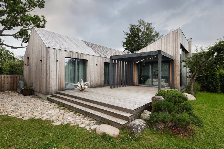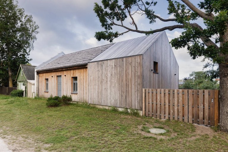Původní budova v jedné z lotyšských vesnic již nebyla vhodná k bydlení, posloužila však jako inspirace k vytvoření nového domova. Ten představuje malý dřevěný dům, který zaujme originální architekturou s velkými prosklenými plochami. Pokorně vyhlíží do zahrady, která i se vzrostlými stromy zůstala zachována.
