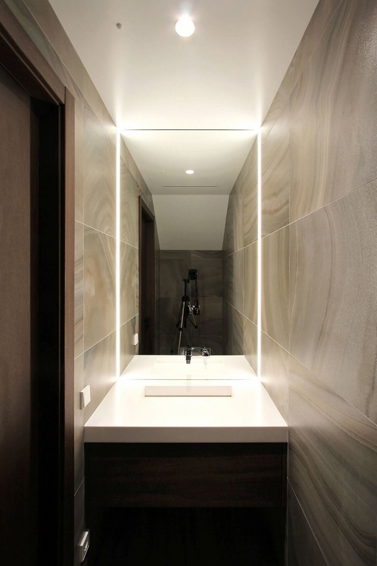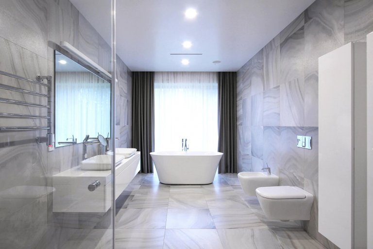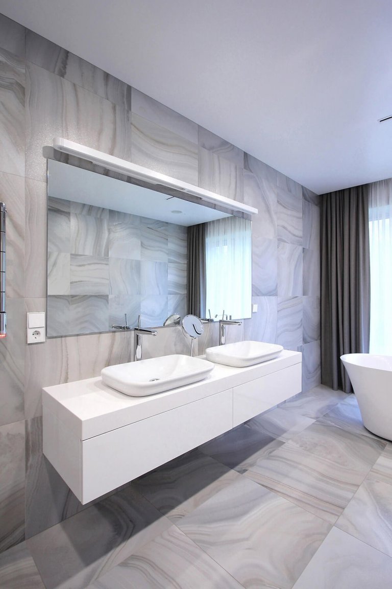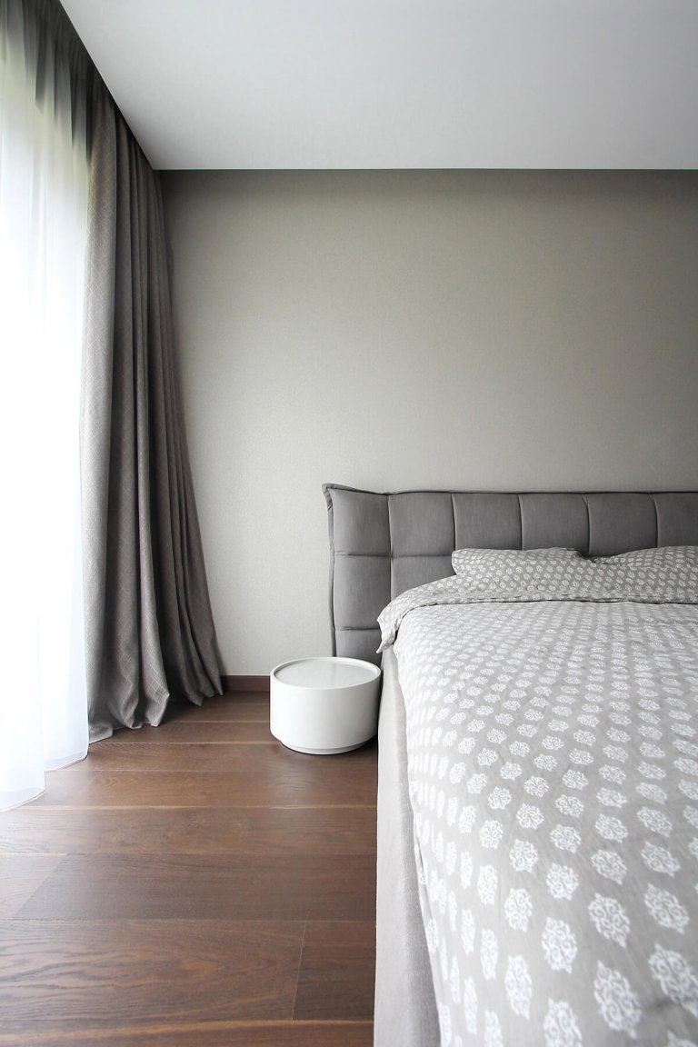 Díky tomu, že se v tomto interiéru prolínají něžně i přísně vyhlížející bytové doplňky, vzniká vskutku osobitý styl bydlení. Na vysokou úroveň jej pozvedají jak obrovská okna zdobená dlouhými těžkými závěsy, elegantně svěšené moderní lampy, tak i působivě vestavěný krb nebo luxusní volně stojící vana v koupelně, ze které je možné shlížet do velkoryse pojatého zrcadla. Opravdovým symbolem luxusu a pohodlí je pak ložnice, jejíž okna opět ohraničují smyslné dlouhé závěsy, které jako by vybízely k zatažení a oddání se k odpočinku v tak krásné a luxusně pojaté rezidenci.