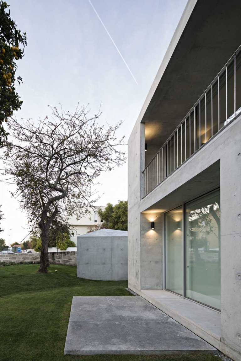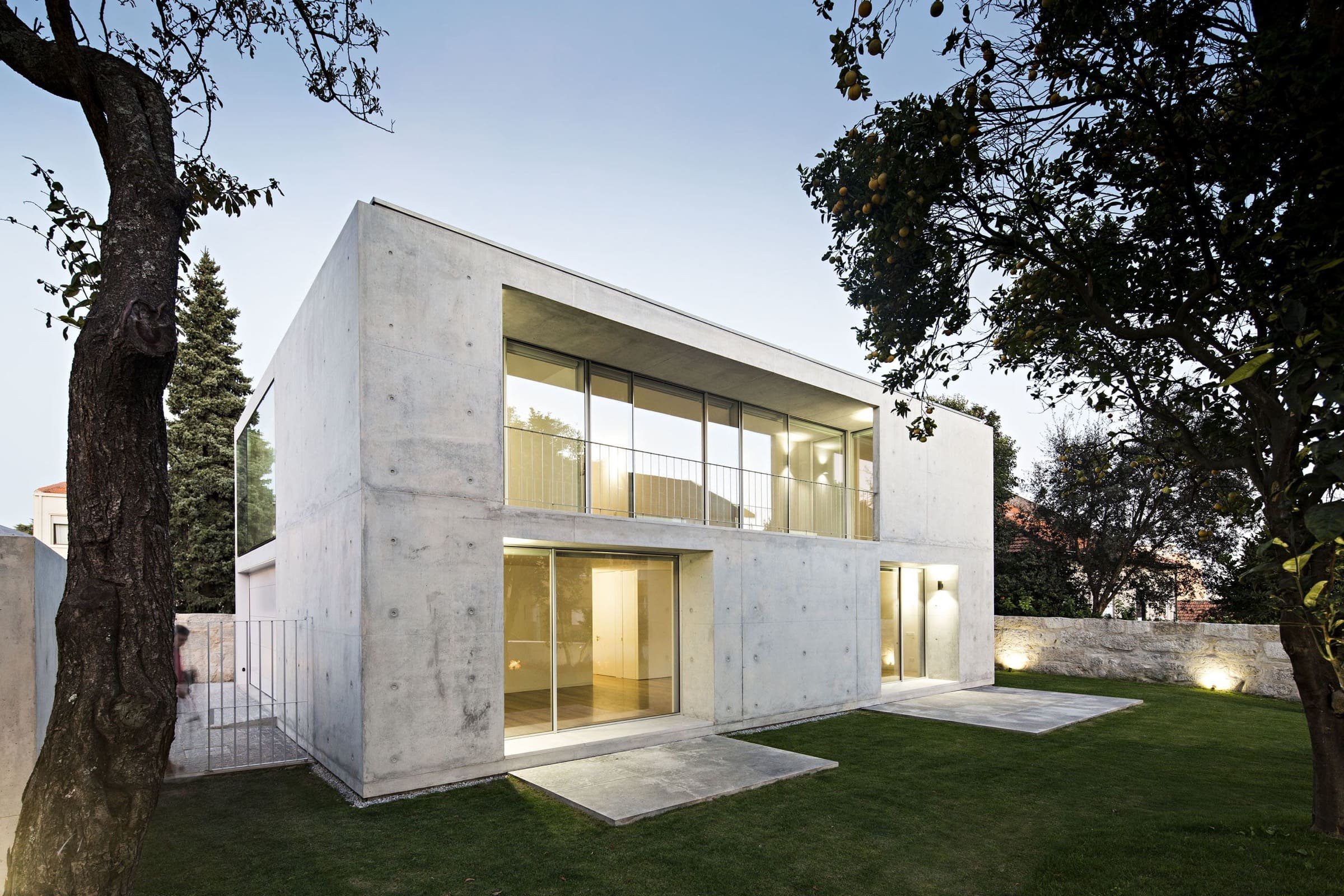 Rodinný dům v Portu zaujme svou střídající se uzavřeností a otevřeností. Monolitický kvádr totiž zajímavě narušují velké prosklené plochy, díky nimž dochází k propojení domu se zahradou. Jejich prostřednictvím se dovnitř dostává dostatek denního světla. Výhledy do zahrady zase příjemně osvěžují atmosféru interiéru. Betonový dům tak nepůsobí tak odtažitě a chladně.