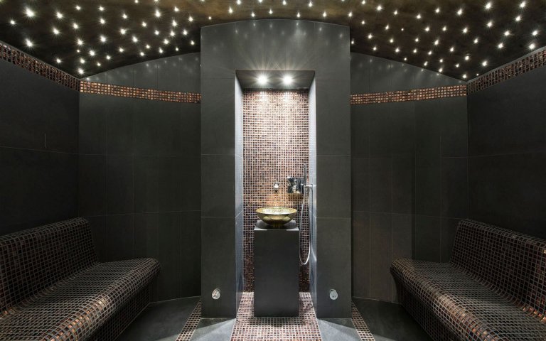 Chata disponuje 8-mi ložnicemi, saunou, masážní místností, posilovnou a krytým bazénem.