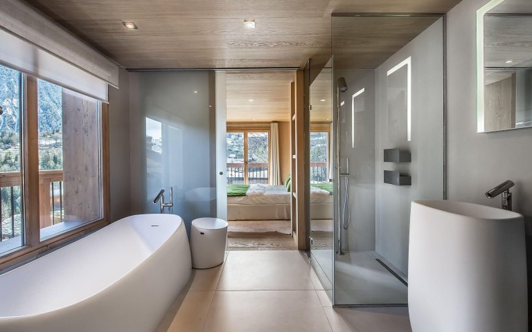 Nejen ze společenských prostor, ale také z ložnic je možné pozorovat malebné okolí domu. Na ložnici navazuje koupelna a je zde k dispozici vana i sprcha. Třešničkou na závěr je pak soukromé wellness s vířivkou a saunou. No nepřáli byste si také takové místo k odpočinku?