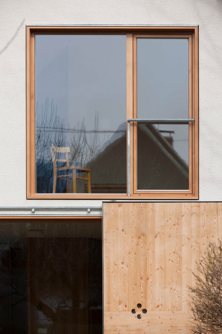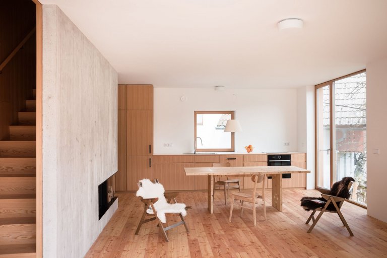 Dům se dřevem, přiznaným betonem i velkými okny