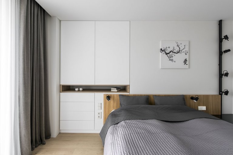 Černá a bílá s dřevěnými akcenty. Takový je interiér bytu, který vám dnes představíme. Byt se nachází ve Vilniusu, hlavním městě Litvy a navrhlo jej designové studio Rimartus. Jednoduchost a monochromatické sladění barev činí tento městský interiér velmi elegantním. Čisté a jednoduché tvary, geometrické uspořádání jednotlivých kusů nábytku a doplňků je velmi povedené. Dřevěné prvky, které místy vystupují zpoza bílých a šedých ploch vytvářejí spolu s krbem domácí atmosféru. S pomocí LED pásků a podhledů je vytvořena příjemná hra světel. Nastavitelné černé lampičky, které se opakují v celém bytě jsou příjemným počinem, který vizuálně doplňuje celkový dojem.