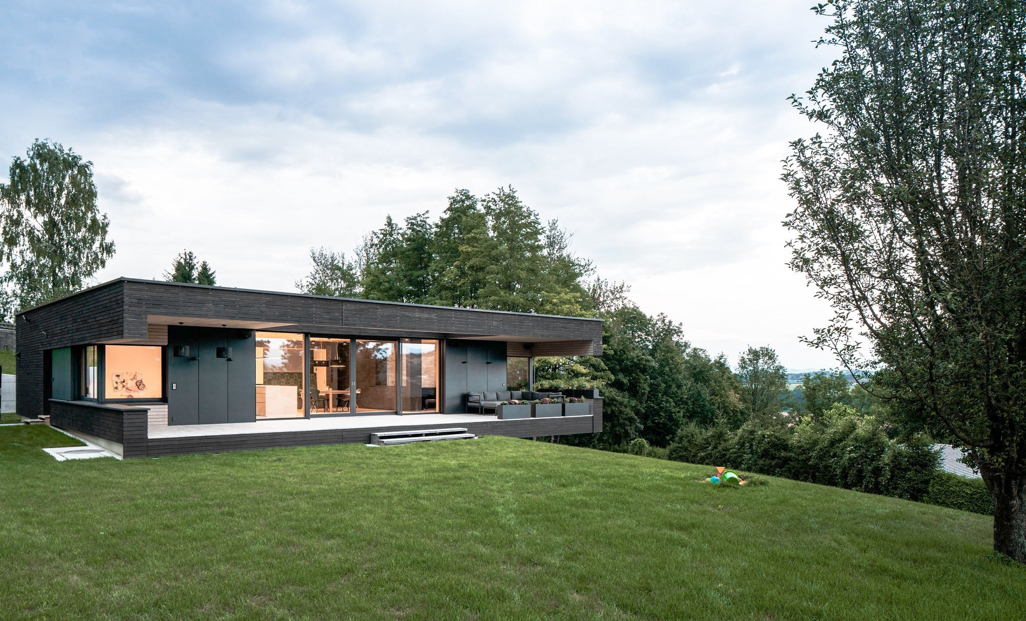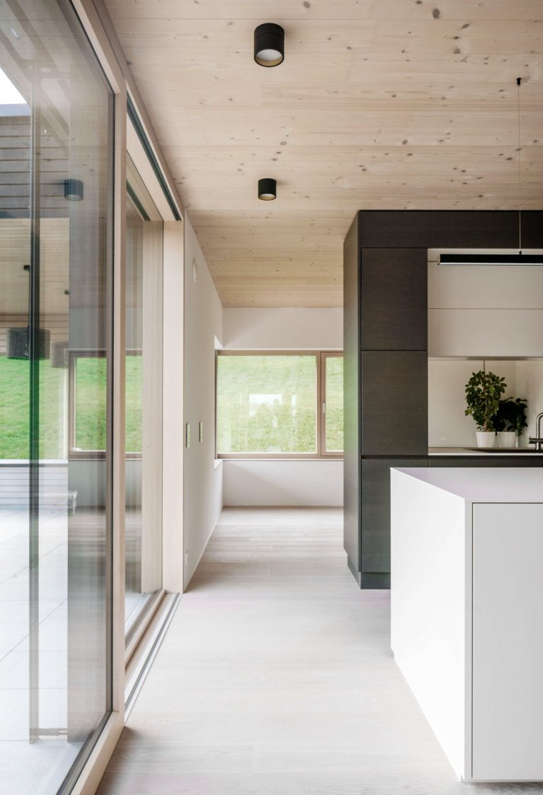 V podhorském regionu Horní Rakousko, který je typický nízkými kopci a úchvatnou podívanou na Alpy, vyrostl moderní rodinný dům, jenž jako by levitoval nad svahem. Díky velkým proskleným plochám zaniká pomyslná hranice mezi interiérem a exteriérem. Dům je plný světla i zajímavého designu.
