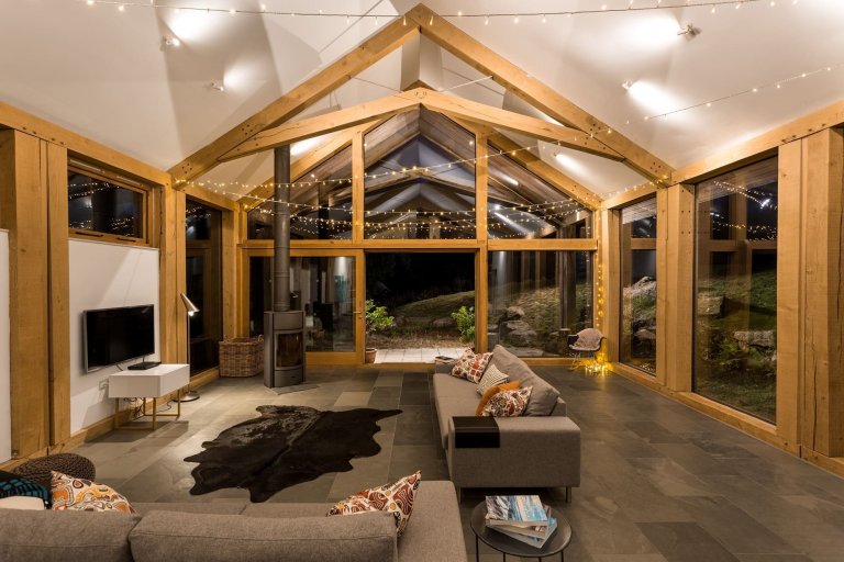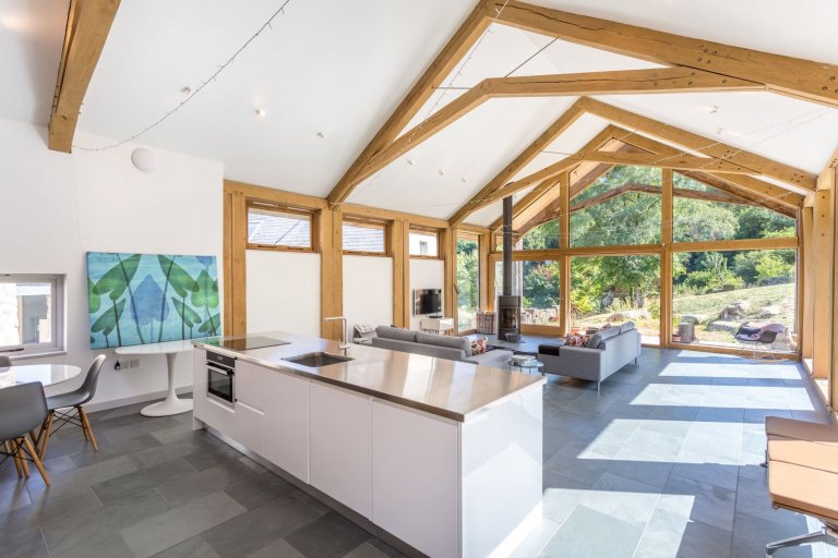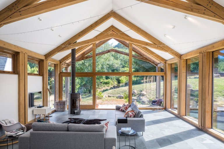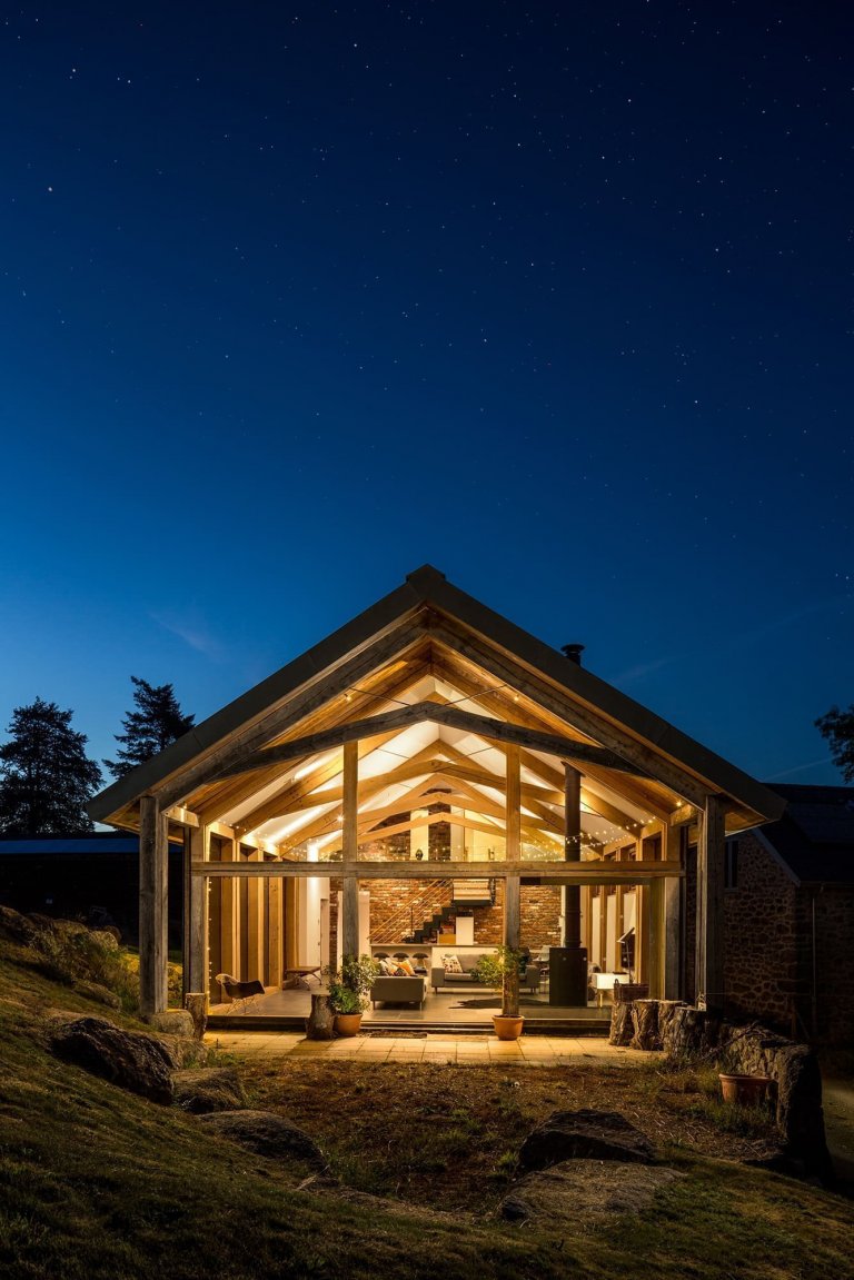 Celkový design statku udávají dubové rámy. Původní dojírna z cihel a kamene se změnila na ubytování se skleněnou a dřevěnou rámovou konstrukcí. Byla vytvořena lehká a prostorná konstrukce podobná stodole s prosklením ze všech stran a dramaticky odhalenými vazníky. Jemně řezané čtvercové profily byly použity v kombinaci s ocelovými spojkami a spojovacími tyčemi. Centrální strana je vytvořena obráceným dubovým „V“ a poté byla připevněna zpět k hlavním tyčím z nerezové oceli. Otevřený střešní prostor v kombinaci s rozsáhlým zasklením umožňuje obytný prostor zcela zaplnit denním světlem. Aby bylo možné co nejlépe doplnit masivní kamenné a cihlové zdi stodoly, klíčovým aspektem návrhu bylo udržení silné fyzické estetiky rámu. Proto byly dřevěné sloupy zdvojnásobeny, a díky malé mezeře mezi nimi byl vytvořen prostor pro pohyb dřeva. Budova byla svázána novou zinkovou střechou, která odkazuje na zemědělské dědictví pozemku.
