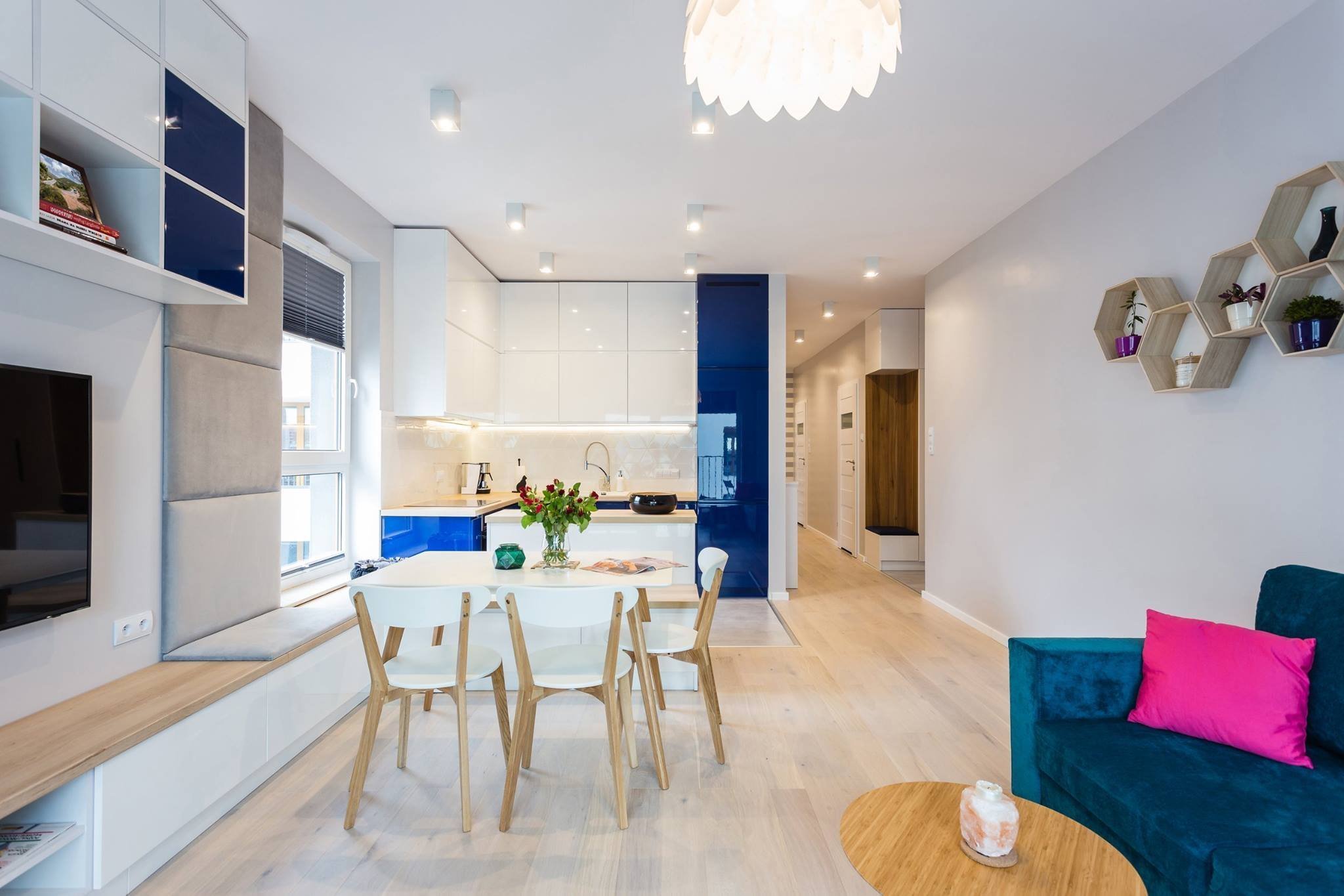 Jednou z nejlepších vlastnosti modré barvy, co se zařizování interiéru týče, je fakt, že tato barva dobře působí po optické stránce. Dokáže totiž opticky zvětšit i sebemenší prostor, proto jde o barvu, jež je vhodná i do menších bytů či garsonek. Naopak - modrá barva se nehodí do míst, kde neproudí příliš denního světla. V tom případě by na nás daná místnost nepůsobila větším dojmem, spíše bychom se cítili nepříjemně a chladně. Světle modrá barva je dokonalá i pro výmalbu větších ploch, jelikož není nikterak přehnaně výrazná. Často se využívá i jako barva do dětských pokojů, pro její uklidňující účinek.