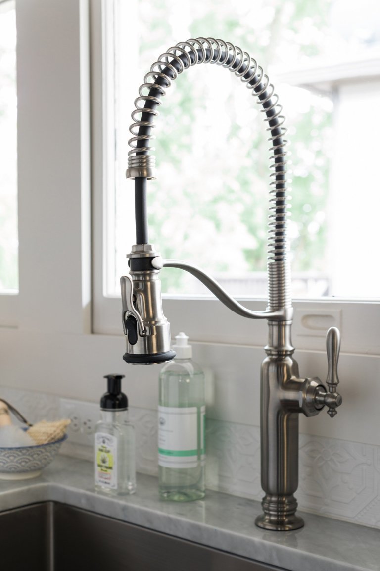 Modrá rustikální kuchyně působí neskutečně půvabným dojmem, který jí však ani trochu neubírá na funkčnosti. Umně se tu šetří s prostorem, což dokazují jak chytře vestavěné kuchyňské spotřebiče, tak úložný prostor na nádobí umístěný přímo pod jídelním stolem. Krásu kuchyně přitom nenarušují ani moderní a převážně funkční prvky, kterými je například zajímavě řešená digestoř v černé barvě nebo stylová kuchyňská baterie. Zaujmout dokážou také další originální prvky v kuchyni, z nichž vyniká stříbřitá hlava jelena na zdi. Za povšimnutí stojí i elegantní úchyty kuchyňských skříněk.