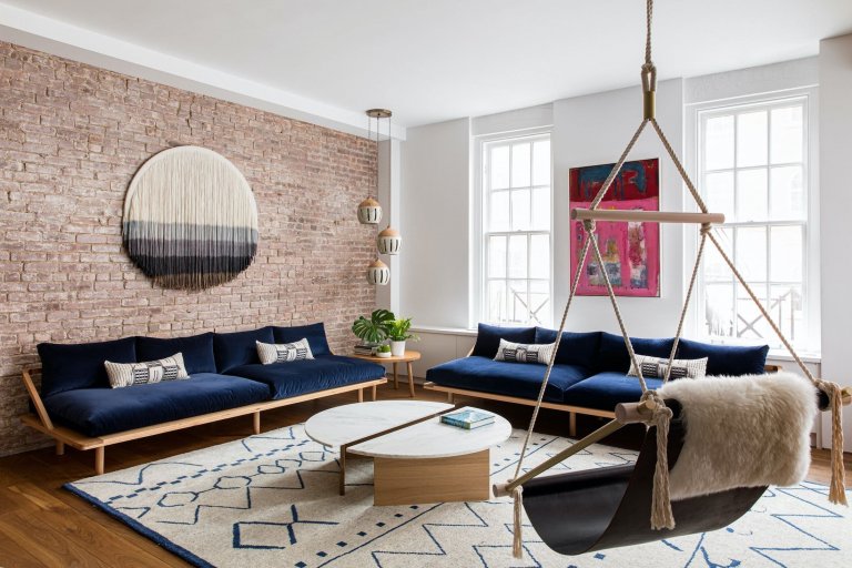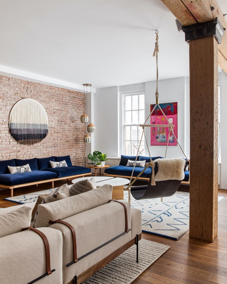 O tom, že i bydlení zařízené směsicí různých stylů může působit elegantně, svědčí nápaditý interiér loftu v New Yorku. Letmými či výraznějšími doteky v něm o sobě dává vědět rustikální, industriální i ethno styl. O útulné vzezření tohoto zbrusu nového domova se stará i příjemná kombinace modrých tónů a odhalené cihly.