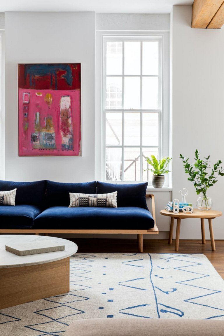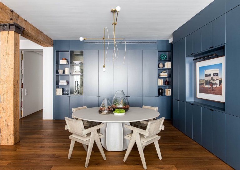 V místní části newyorského Manhattanu tak vzniklo neskutečně charismatické a přitom ryze funkční i útulné bydlení, které je plné cestovatelské vášně. Odhalená cihla, příjemné odstíny dřeva a sametově modré tóny mu dodávají příjemný pánský charakter. Sklad kaviáru se tedy proměnil na domov s duší novodobého Ernesta Hemingwaye.