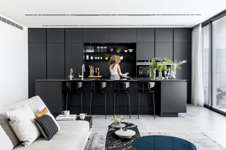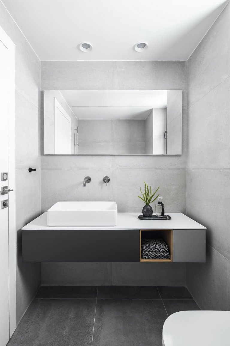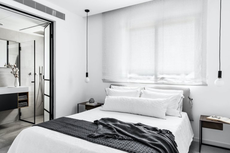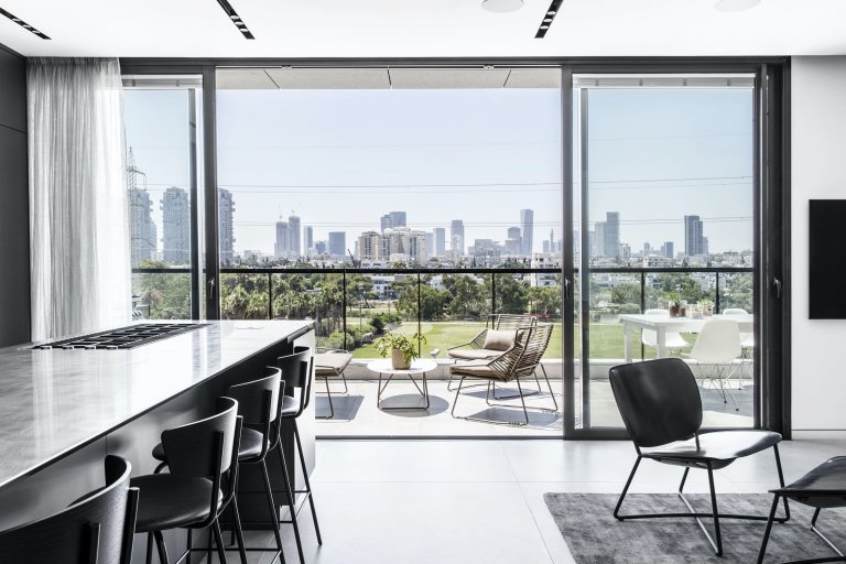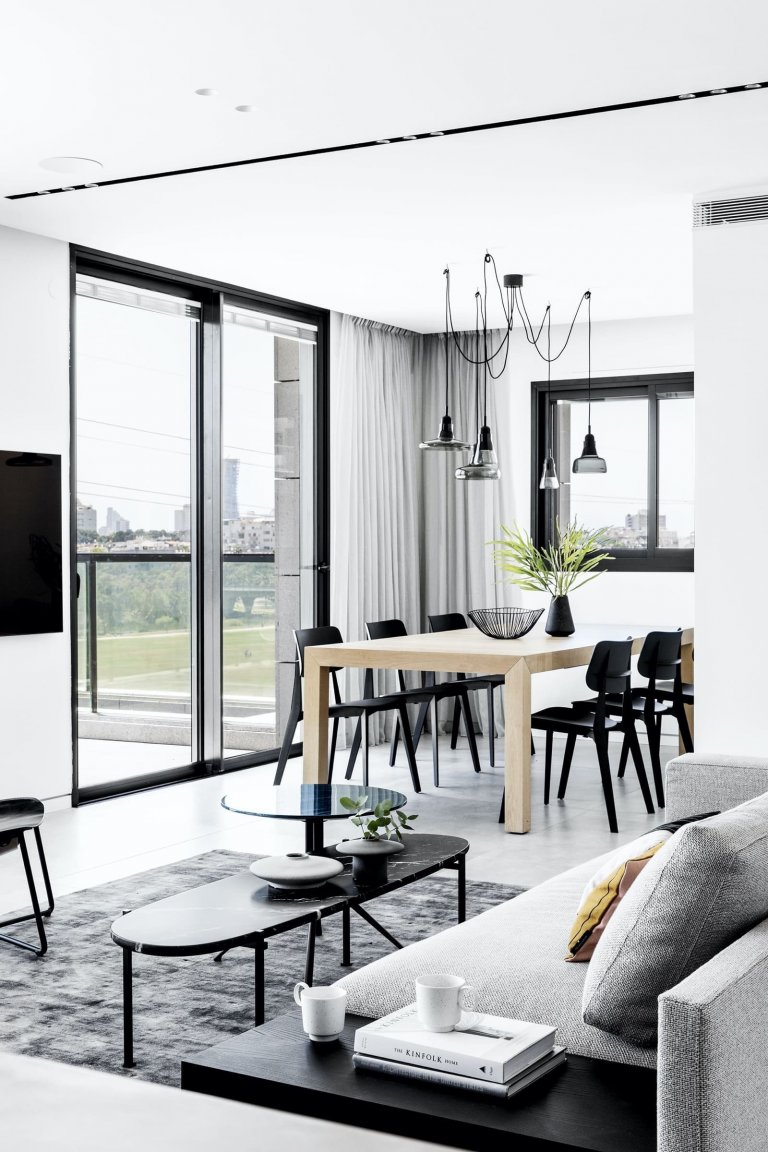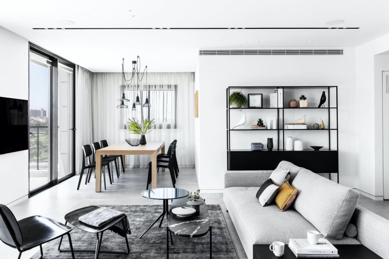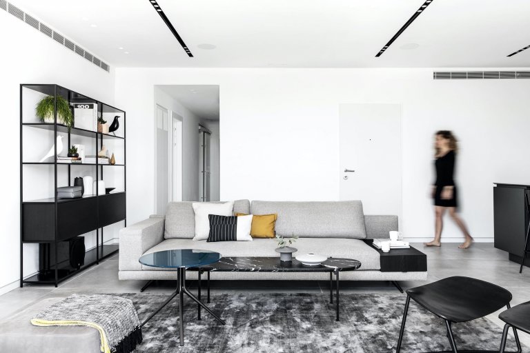 Rekonstrukce apartmánu o rozloze 120 m2 se stala výzvou pro izraelské studio vedené Mayou Sheinbergerovou. Na výsledek si jeho majitelé museli počkat dva roky, stálo to však za to. Získal decentní monochromatický vzhled doplněný o akcenty svěžích barev. Zaujme tak nejen příjemnou barevnou paletou, ale i otevřeností, vzdušností a minimalistickým stylem.