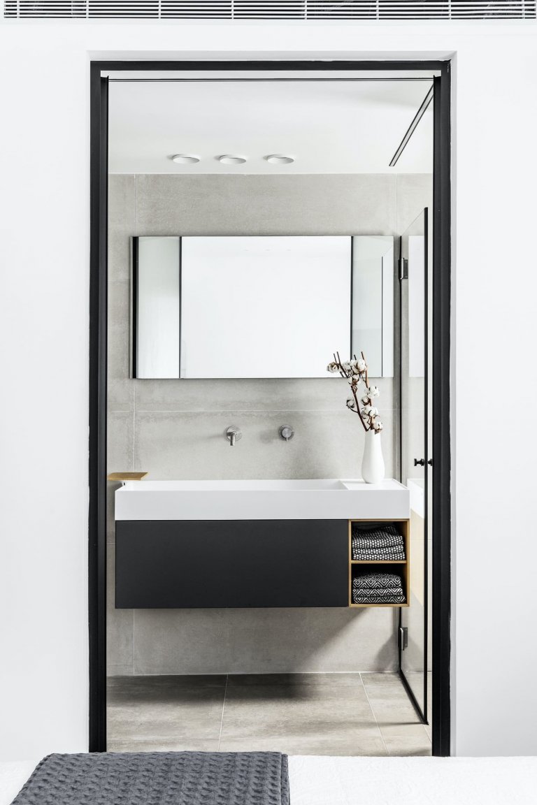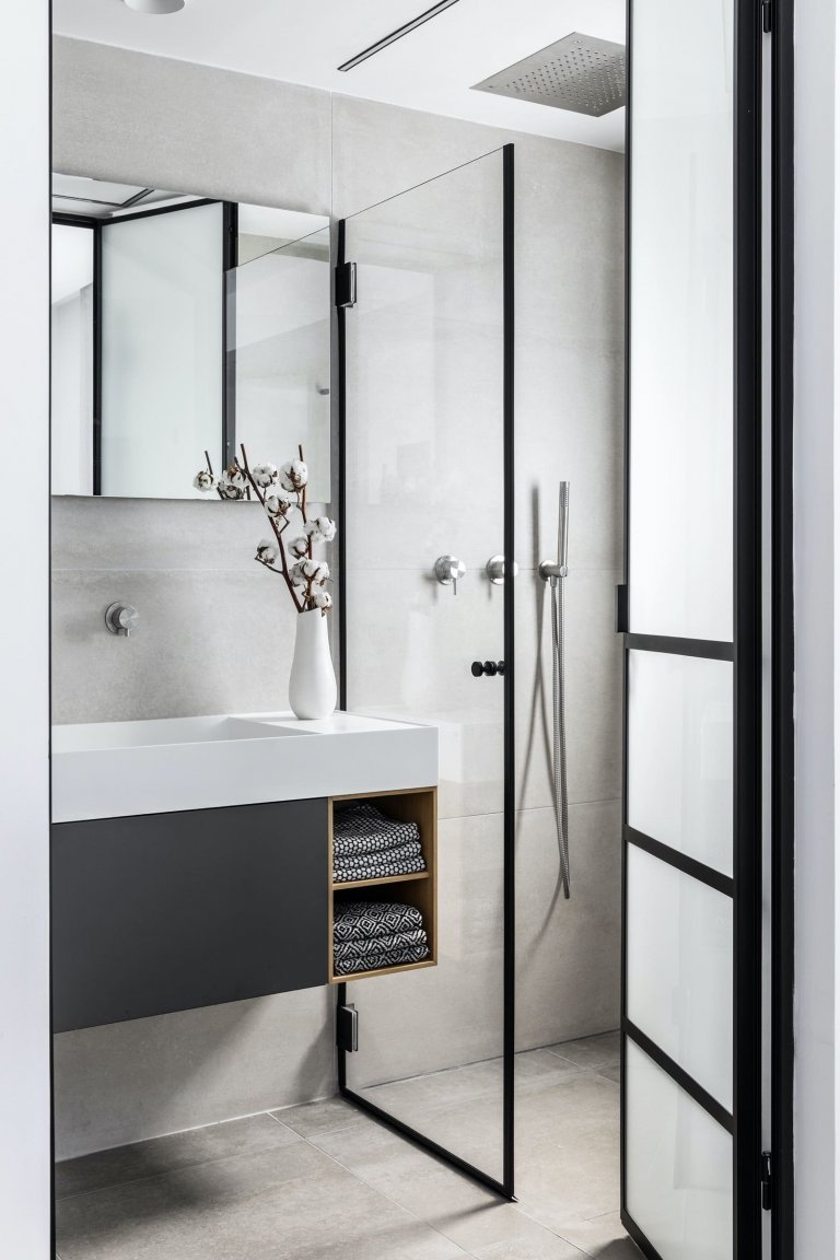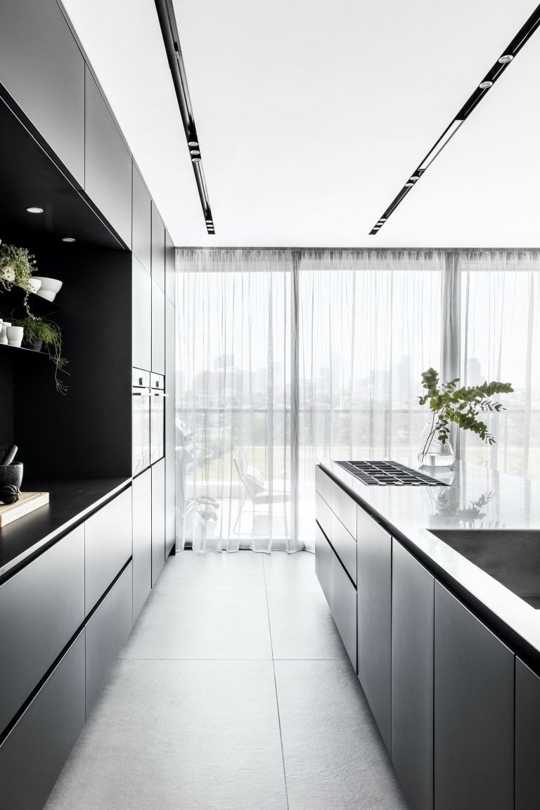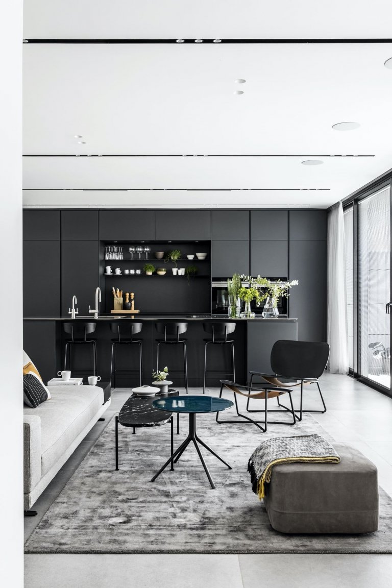 Rekonstrukce apartmánu o rozloze 120 m2 se stala výzvou pro izraelské studio vedené Mayou Sheinbergerovou. Na výsledek si jeho majitelé museli počkat dva roky, stálo to však za to. Získal decentní monochromatický vzhled doplněný o akcenty svěžích barev. Zaujme tak nejen příjemnou barevnou paletou, ale i otevřeností, vzdušností a minimalistickým stylem.