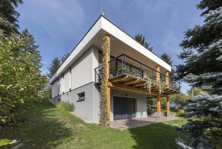 Příjemné bydlení vyrostlo v náruči vzrostlých stromů a keřů v obci Čtyřkoly nedaleko Prahy. Na jižním svahu tak původní chatu vystřídal příjemně vyhlížející dům pro dva, který je usazen přímo ve stopě bývalého rekreačního objektu. Na přání majitelů, kteří jsou zároveň vášnivými zahrádkáři, si okolní zahrada zachovala svou krásu. Nepadla, jak už to tak bývá, za oběť komfortnějšímu obydlí. S trochou fantazie a velkou dávkou citu tak v symbióze s novým domovem vzniklo zároveň příjemné místo pro setkávání s rodinou a přáteli.
