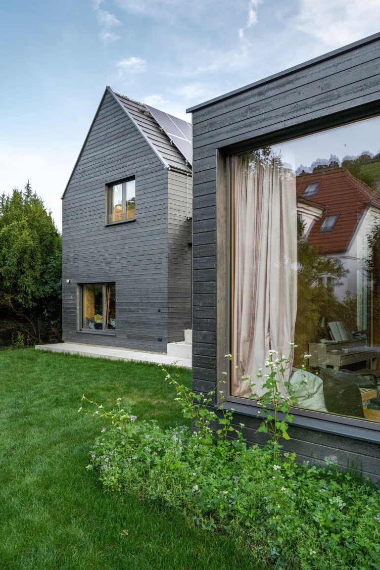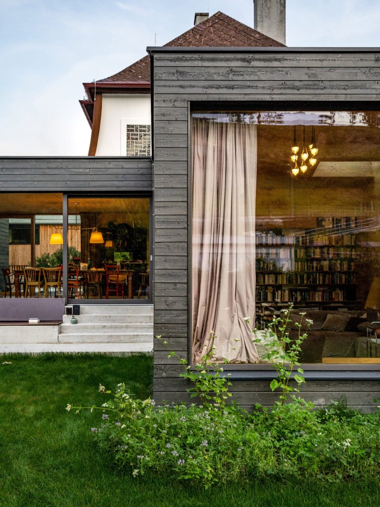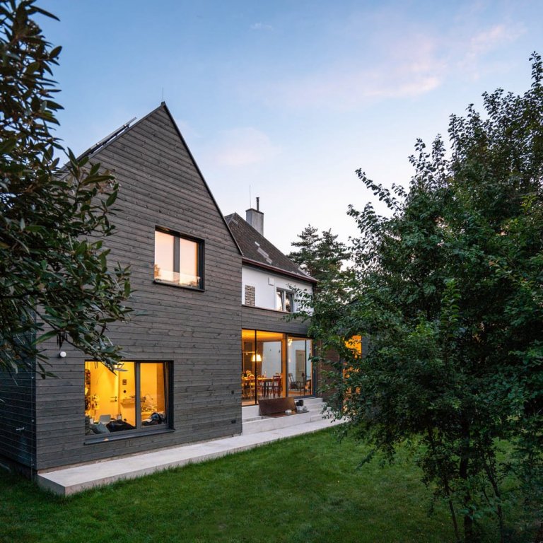 Původní dům mezi novými přístavbami nezanikl, naopak o to více vynikla jeho krása. Nové části bydlení navíc těží z jeho atmosféry, historie, patiny, … Architektům se tak podařilo s citem a instinktem sobě vlastním propojit různorodé objemy a vytvořit bydlení, které má neskutečný šarm. Tři nové celky vypadají jako pasparty, které zvýrazňují a oslavují původní stavbu. Charisma starého domu tak ve výsledku není přístavbami utlumeno, ale naopak posíleno.