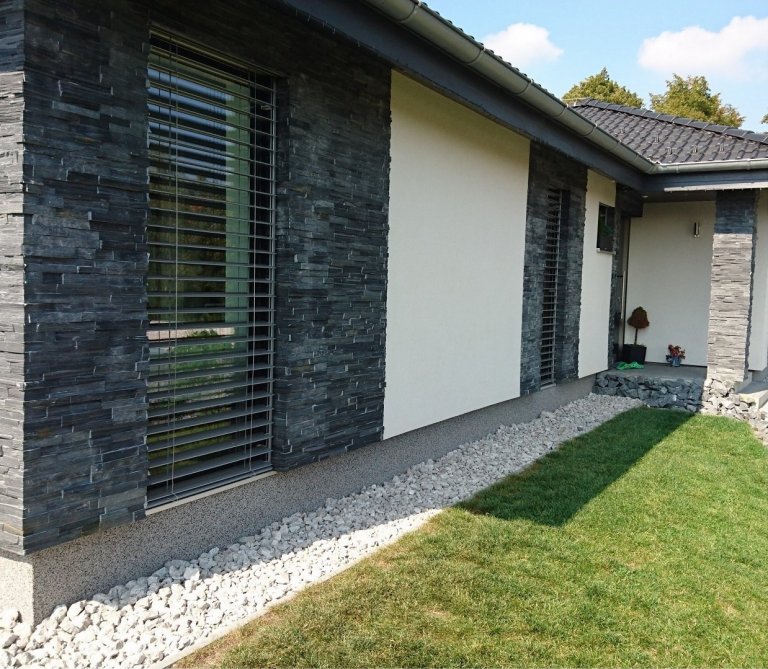 Břidlice je hornina, která vznikla postupným usazováním jílovců a prachovců. Těží se v dole a na světlo světa se dostává v působivých odstínech modré, šedé až černé barvy. Navíc se velmi snadno opracovává a díky dobré rovinné štěpnosti se z ní jednoduše vytvářejí tenké desky. Břidlice tak představuje univerzální přírodninu, která dokáže zajistit dokonalý efekt, kvalitu, ale také ekonomickou dostupnost. Tím ale zdaleka výčet jejích předností nekončí. Zaujmout totiž dokáže i svou vysokou odolností, barevnou stálostí, tvarovou variabilitou a minimální údržbou. V případě obkladů zdí hrají významnou roli i její tepelné a izolační vlastnosti. Jedná se zkrátka o vysoce efektní, ekologický a nadčasový materiál.