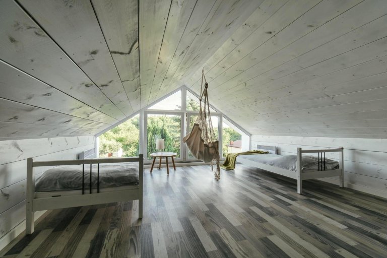 Do okolní překrásné přírody tak naprosto přirozeně zapadlo vcelku neobvyklé letní bydlení, které připomíná romantický zahradní domek z časů dětství. Za jeho velkými okny se skrývá útulný domov plný světla, čistě bílé barvy a přírodních materiálů. Nechybí zde točité schody, hravé zástěny, půvabné lampy a lustry, svěže zelené pokojové květiny a kupodivu ani houpačka, ze které je dechberoucí výhled na koruny vzrostlých stromů.