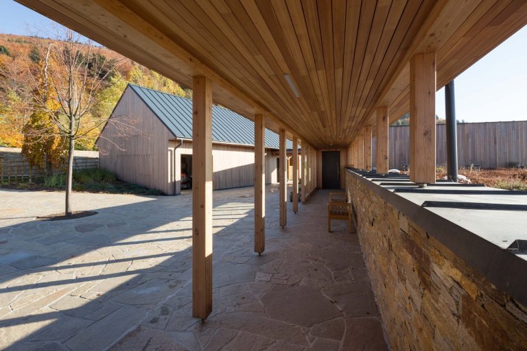 Dům plynule navazuje na okolní přírodu nejen přírodními materiály, které byly k jeho výstavbě použity, ale také svobodomyslnou zahradou. Nestrhává na sebe pozornost svou přílišnou úpravností a je takovým mezistupněm mezi domem a krajinou hrající podobným spektrem barev. Zůstává proto krásná během každého ročního období.
