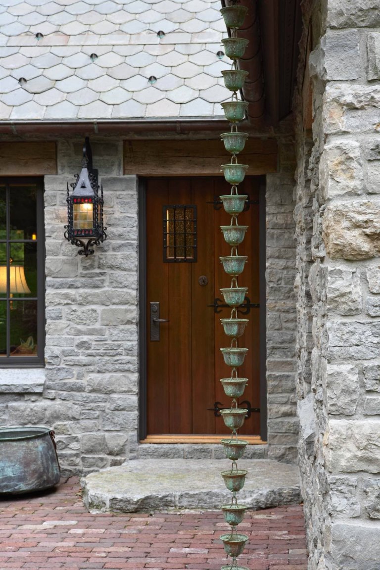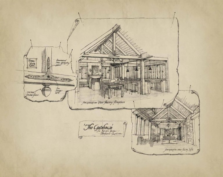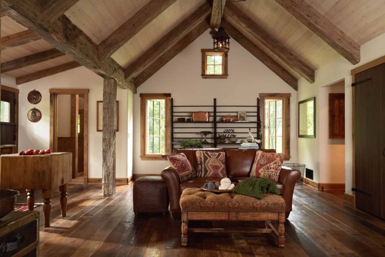 Interiérový designér Jeff Murphy z Murphy & Co. Design dohlížel na projekt a stylizoval ho do tradičních anglické venkovské chalupy. Aby nová chalupa vypadala, že byla postavena před více než sto lety, vyhledával materiály a stavební techniky autentické pro toto období. V chalupě je rám z dřevěného sloupu a trámu sestavený ze spár řezaných ručně a zpevněných dřevěnými kolíky. Vnější dveře jsou ručně vyráběné a stěny jsou zakončeny ručně nanášenou omítkou.