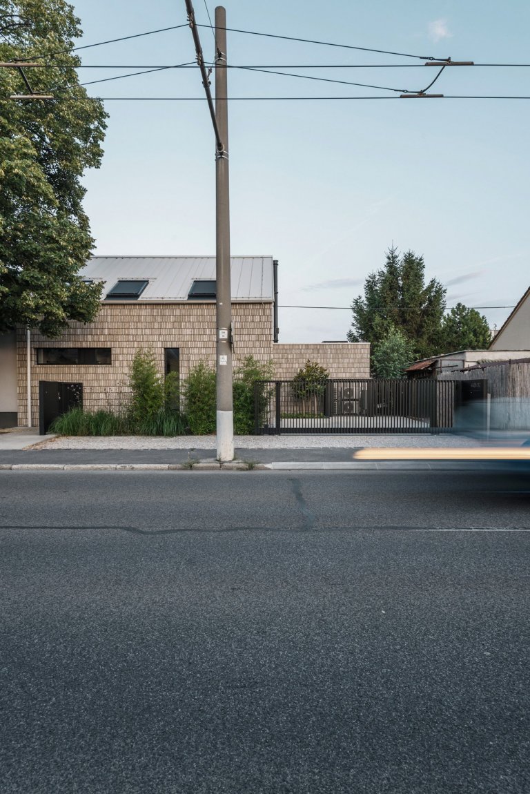 Za působivým vzhledem novostavby balancující na pomezí rušné ulice a klidné zahrady stojí slovenské studio Lang Benedek Associated Architects, konkrétně architekti Michal Lang a Borislav Benedek. Vytvoření nového domova ve čtvrti Trnávka, nedaleko bratislavského letiště, bylo pro architekty příjemnou výzvou. Z přestavby a dostavby původního dvojdomku bohužel sešlo, jelikož se nacházel ve špatném technickém stavu.