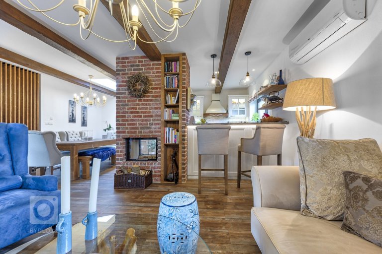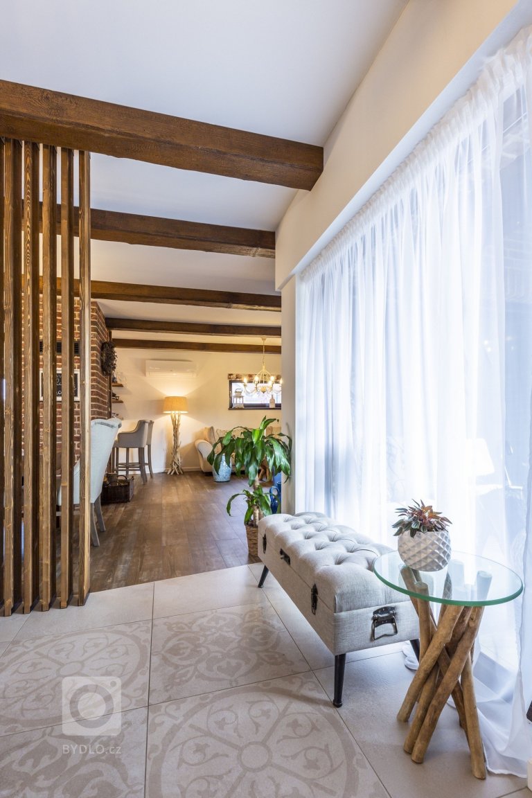 Manželský pár má dva dospělé syny a v původním vícepodlažním domě bylo pro dva prostoru až moc. Proto se rozhodli opustit hlavní město a odejít za klidem venkova. A jejich současný dům si je našel skoro sám. Oba velmi rádi jezdí na kole a na jejich oblíbené trase natrefili na dům k prodeji. Sice je v původním stavu nijak neuchvátil, ale viděli v něm velký potenciál, který za pár měsíců proměnili v realitu. Dům byl ve stavu holostavby, měl pouze okna, vnitřní stěny, sádrokartonové podhledy a fasádu. To je přesně ten moment, kdy máte volnou ruku a fantazii se meze nekladou. Majitelé měli jasnou představu o svém budoucím domově. Chtěli si splnit sen o bydlení v domě ve venkovském stylu. Autorkou interiéru je Dominika Tománková - DT Interior design, která vize majitelů přeměnila ve skutečný domov, kde je radost být a relaxovat.