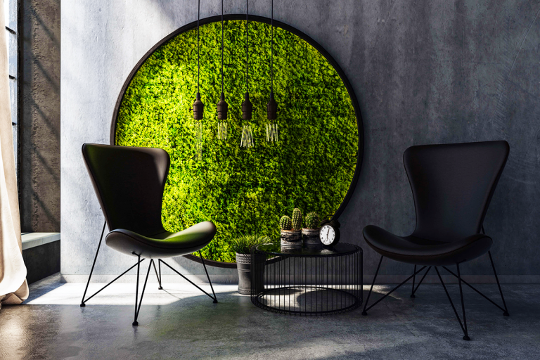 - V případě mechové stěny – absorbace zvuku, což se hodí hlavně u kanceláří, kdy může být z mechu i celá stěna.