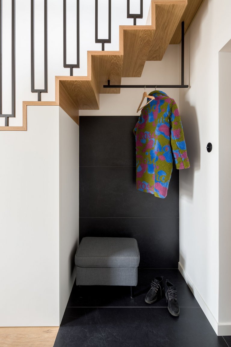 Jak je tedy patrné, i na relativně malém prostoru lze vytvořit nápadité bydlení, které je zároveň útulné a vzdušné. S kombinací dřeva, bílé a černé barvy a také několika veselých akcentů tak vznikl moderní byt s prvky retro i industriálního stylu, který v sobě originalitu rozhodně nezapře.