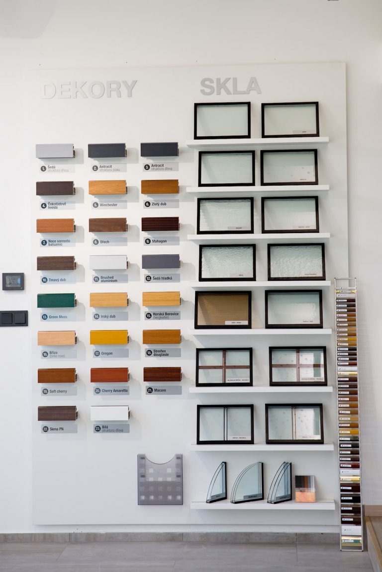 Jak prozradil jednatel společnosti Tomáš Mazel, showroom je koncipován tak, aby ukázal všechny běžné věci, které lidé při nákupu otvorových výplní řeší. „K vidění jsou řezy profilů různých oken, ukázka dvojskla a trojskla, několik typů ornamentního zasklení jako je třeba kůra nebo matné mléčné sklo a nechybí ani představení nejběžnějších barev a dřevodekorů.“ Dále si lidé mohou prohlédnout různé varianty venkovních a vnitřních parapetů a také interiérových žaluzií.