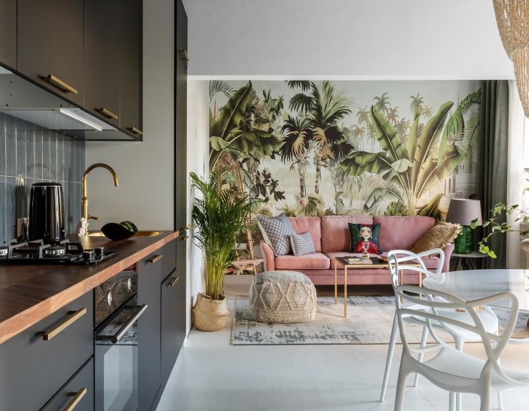 Bydlení, které dnes navštívíme alespoň virtuální cestou, v sobě mísí hned několik netradičních stylů. A tak tu najdeme styl boho, glamour i botanical. Jejich vytříbený koktejl dal vzniknout naprosto okouzlujícímu interiéru, jemuž odvaha a sex-appeal rozhodně nechybí.
