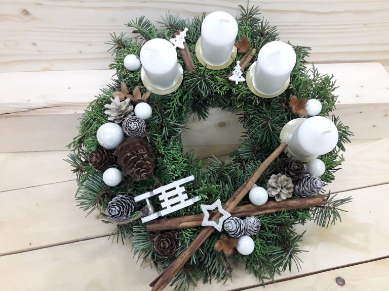 Tradiční adventní věnec z chvojí může každým rokem získat zcela novou podobu, s níž je možné dosáhnout opravdu originálního výsledku. Stále by se však mělo dbát na to, aby větvičky chvojí směřovaly po věnci ve směru hodinových ručiček, což opět symbolizuje nekonečný koloběh života. Budoucí adventní věnec je třeba omotávat svazky větviček jehličnanů po celém pohledovém obvodu a pevně je v dolní třetině přichytávat ideálně zeleným floristickým drátem. Ten však při správném přikládání další vrstvy větviček nebude vidět. Na hotový věnec se v pravidelných vzdálenostech umístí stojánky na svíčky a může se začít se zdobením lesklými vánočními ozdobami či ryze přírodními dekoracemi. V této fázi je ale třeba pamatovat na to, aby svíčky na věnci hořely bezpečně a nedoléhaly k nim příliš blízko mašle a další zdobení. Adventní věnec z chvojí je tak báječnou klasikou, kterou jen pozvolna střídají jiné věnce, ke kterým patří například adventní věnec z proutí.