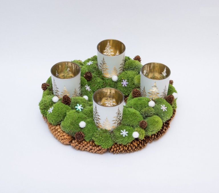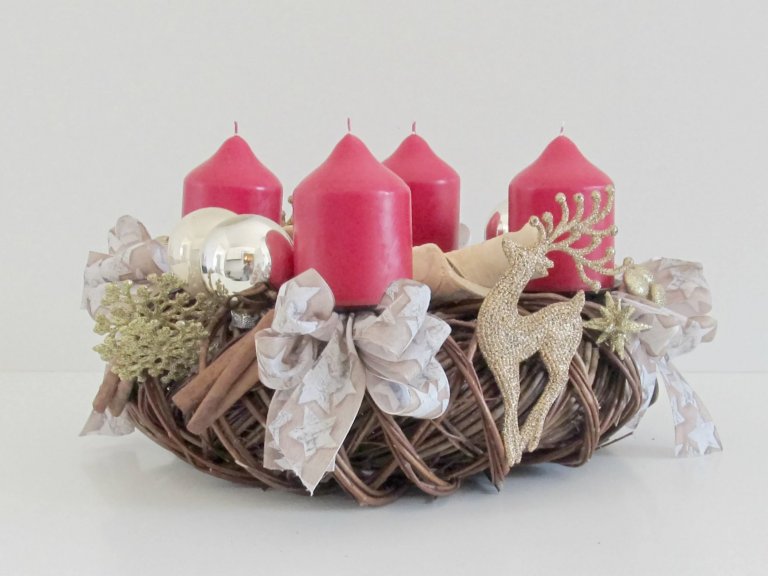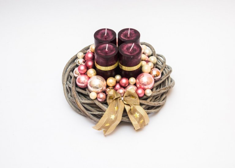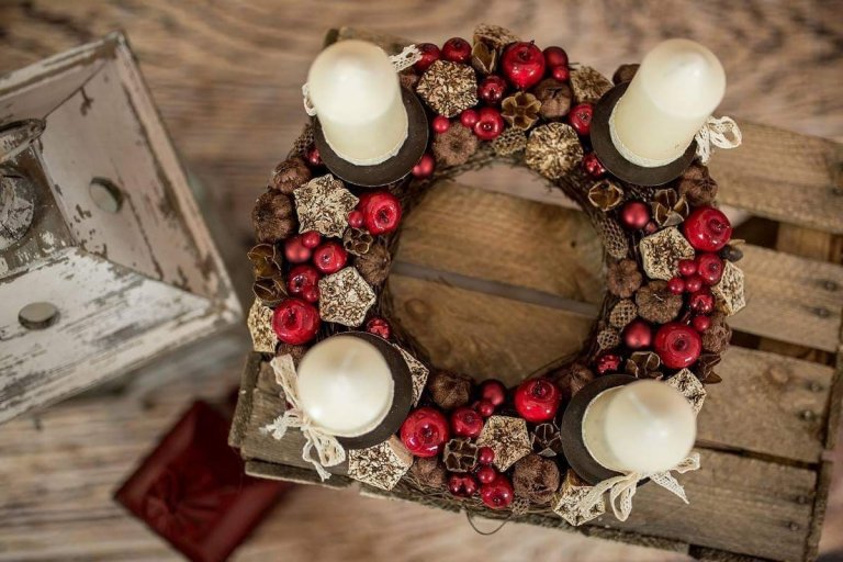Originální adventní věnec může s přehledem nahradit i tác s vyšším okrajem nebo hlubší ozdobný talíř naplněný blyštivými vánočními ozdobami, z nichž budou vystupovat čtyři barevně sladěné svíčky. Ty lze umístit na skleněné misky otočené vzhůru nohama. Milovníci minimalistického a zároveň rustikálního stylu zase při výrobě originálního adventního věnce jistě ocení menší březový, smrkový nebo bukový špalek. Na jeho řeznou plochu lze totiž pomocí tavné pistole přilepit čtyři svíčky spočívající opět poněkud netradičně bok po boku. Dozdobit se pak dá kytičkou z buxusu připevněnou ke špalíčku pomocí barevné stuhy. Fanoušci industriálního stylu mohou naproti tomu vyzkoušet umístit čtyři svíčky do plechovek vysypaných kameny nebo pískem. Ty mohou na místo mašlí zdobit krasopisné nápisy se jmény jednotlivých adventních nedělí. Takovou industriální adventní dekoraci lze ještě doplnit o borové šišky a větvičky cesmíny. Naprosto originální adventní věnec je však možné vytvořit i výhradně z darů zahrady či kuchyně. Na stole se tak v kouzelném adventním čase může překrásně vyjímat třeba takový věnec z perníku nebo jablek. Fantazii se zkrátka meze nekladou, což platí o adventním i vánočním čase dvojnásob.