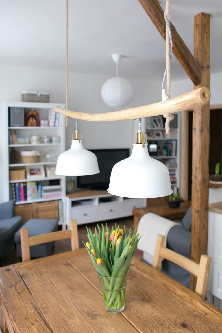 Chalupářský ráz by nebyl ten pravý bez lásky a úcty k řemeslné práci. Také tyto hodnoty o sobě dávají v jednotlivých místnostech vědět. Za pozornost tak stojí například práce manžela, který podle představ své ženy vyrobil originální osvětlení nad kuchyňský stůl. To se skládá ze dvou lamp vedených dutou větví, která je zavěšena na konopném laně. Tu si teď paní domácí může zdobit různými sezonními dekoracemi. Netradičním osvěžením interiéru jsou také zrenovovaná dřevěná okna se zachovanou původní barvou a oprýskaností. Jejich tabulky jsou totiž vyplněny černobílými fotografiemi dětí. Chalupářský styl v interiéru panelového bytu však vyniká především díky prvkům z již zmíněných stoletých trámů. Ty byly zakomponovány téměř do každé místnosti. V kuchyni je to jídelní stůl, mezi kuchyní a obývacím pokojem trám s pultem, v koupelně zrcadlo a police a v ložnici zase krásná velká postel.