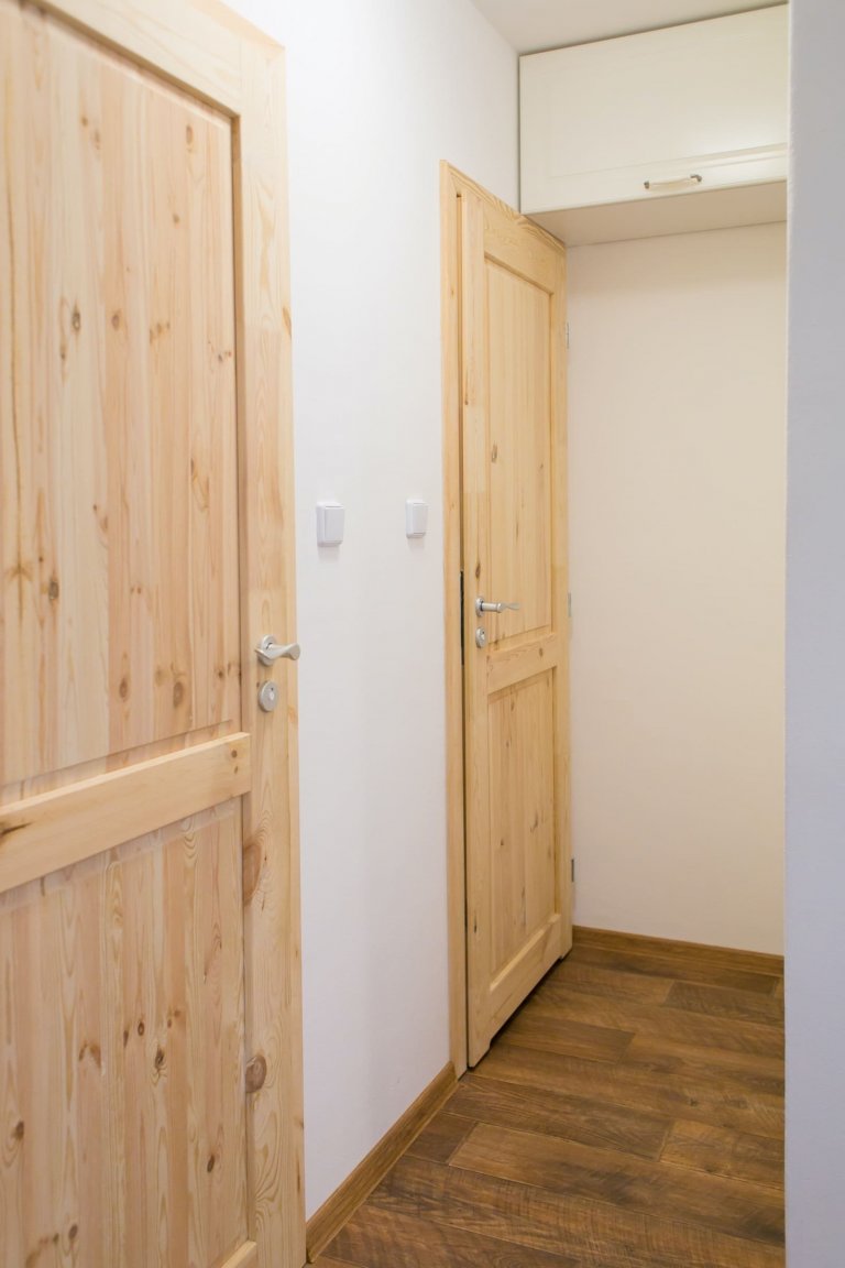 Celý byt po rekonstrukci neskutečně prokoukl. Každý člen rodiny pro sebe získal mnohem více místa. Ocenili to zejména kluci, z nichž dva mladší teď bydlí v největší místnosti s lodžií a ten starší má svůj vlastní pokoj. Všechny místnosti ve zrekonstruovaném bytě jsou navíc zařízeny v chalupářském stylu tak, jak si to majitelé kdysi vysnili. Téměř v každé místnosti se tak nachází nějaký prvek vyrobený ze stoletých trámů. Mezi obývacím pokojem a kuchyní je to například působivý trám s pultem. Kouzlo přírodních materiálů a přirozené krásy dřeva se opakuje napříč celým interiérem a dodává mu tolik přitažlivý chalupářský ráz. Málokdo by tak poznal, že se nachází právě v panelovém bytě.
