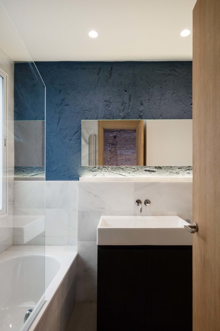 V bytě se majitel může vysprchovat hned ve dvou koupelnách, kdy v jedné najdeme sprchový kout a ve druhé vanu. Majitelovi otevřenost prostoru vyhovuje, protože bydlí v současné době sám. Ve chvíli, kdy by chtěl založit rodinu, by se přestěhoval a byt začal pronajímat. Co se týče dekorací, na stěně mezi vchodem a kuchyní se nachází dřevěná písmena, která spolu tvoří nápis „Musico“, což znamená poctu španělskému dirigentovi a klavíristovi José Iturbimu, který v domě žil jako dítě.