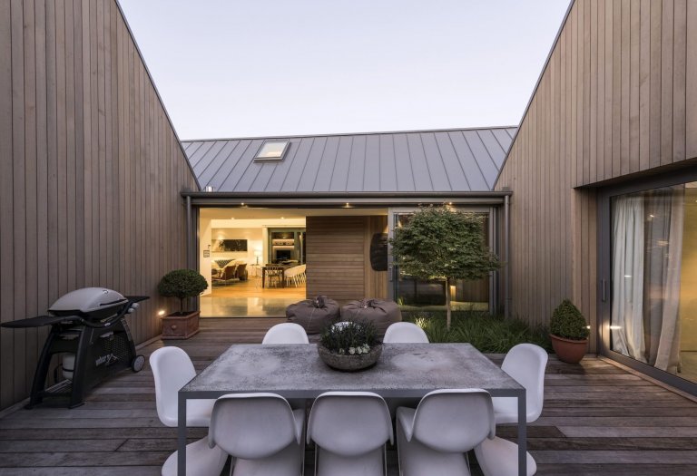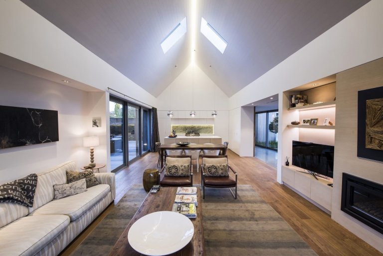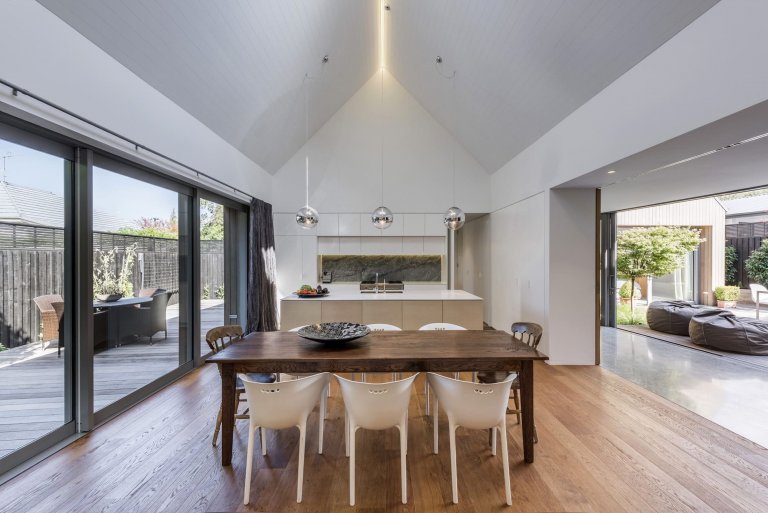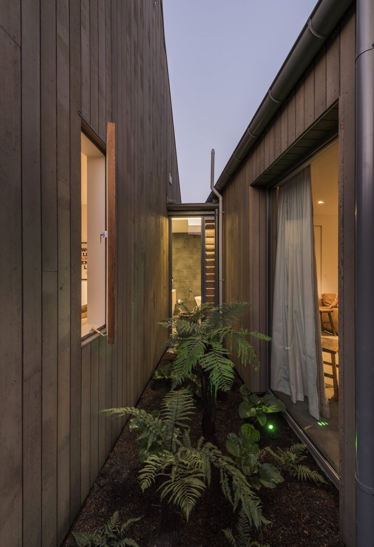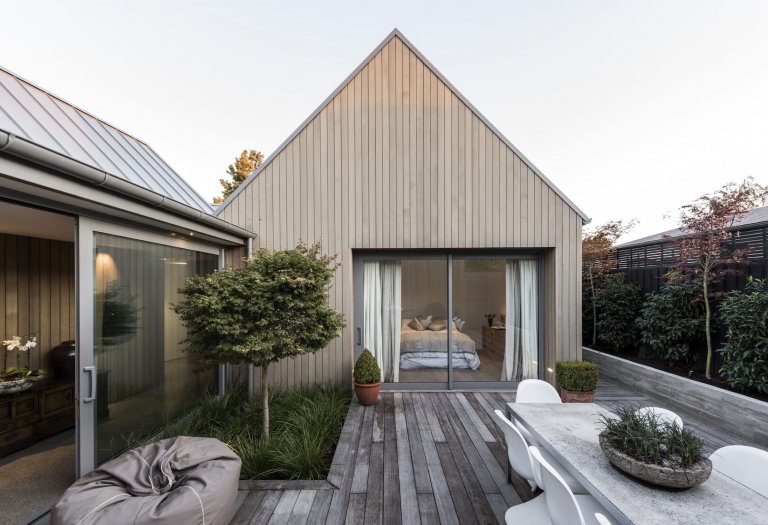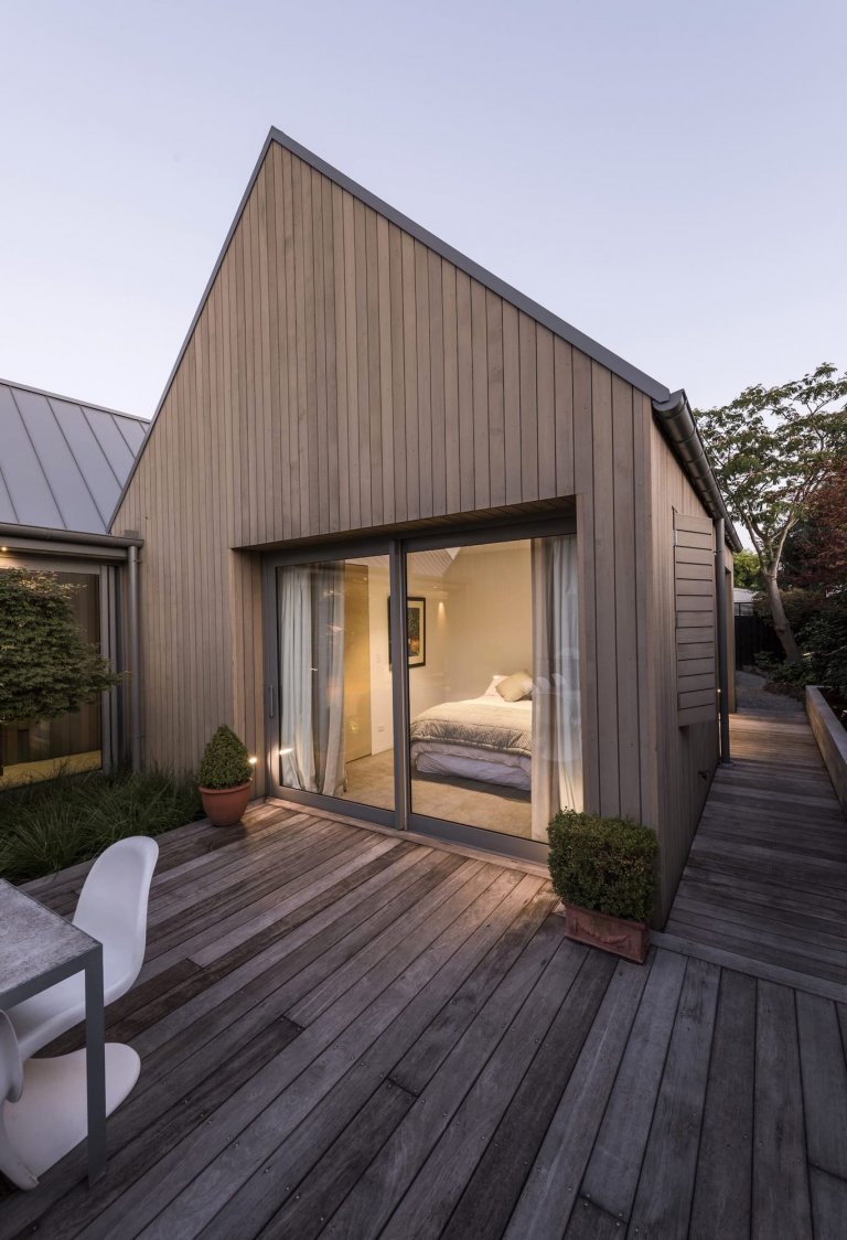 V roce 2010/2011 zasáhlo město Christchurch na Novém Zélandu obrovské zemětřesení a většina budov byla úplně zdevastovaná. Historické město má své kořeny v zemědělství, a tak byl i nový dům navržen jako typicky anglický dům se sedlovou střechou. Dům se skládá ze čtyř vzájemně propojených budov, které vytvářejí sérii teras a nádvoří mezi jednotlivými částmi domu. Každý ze čtyř pavilonů je propojen skleněnými galeriemi s plochými střechami, které umožňují vstup velkého množství světla a výhledy na nádvoří. Na spojení s venkovními prostory se hodně dbalo, proto u hlavní terasy lze celou prosklenou stěnu vedoucí do chodby otevřít, stejně jako ložnici za dřevěnými posuvnými dveřmi. Z terasy se tak během chvíle stává skutečný venkovní obývací pokoj.