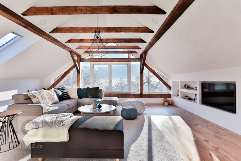 Byt, který vznikl v podhůří Beskyd ze zrekonstruované půdy staršího domu, beze zbytku splnil očekávání mladého páru. Designérce se do něj povedlo promítnout jak jejich lásku k novým objevům, tak přání po zachování starého. Polozapomenuté prostory půdy tak rázem ožily atmosférou umocněnou kontrastem mezi klasickými stropními trámy ze dřeva a moderním vybavením interiéru.