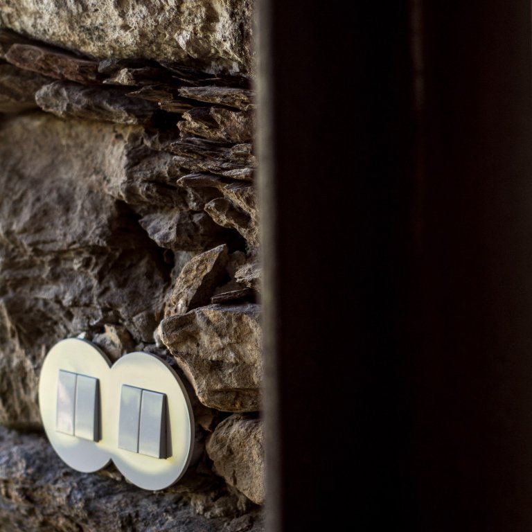 Jak v exteriéru, tak v interiéru hrají prim stále se opakující dekory dřeva, železa a kamene. Aby se podtrhl dojem světlosti a velikosti bydlení, je zde i velké množství skleněných ploch. Díky promyšlené rekonstrukci tak na konci cesty vznikly dvě samostatné bytové jednotky, které jsou doplněny terasou se zásuvnou střechou, z nichž je jistě krásný výhled na tamní krajinu.