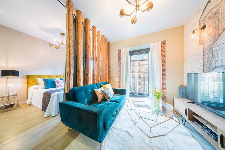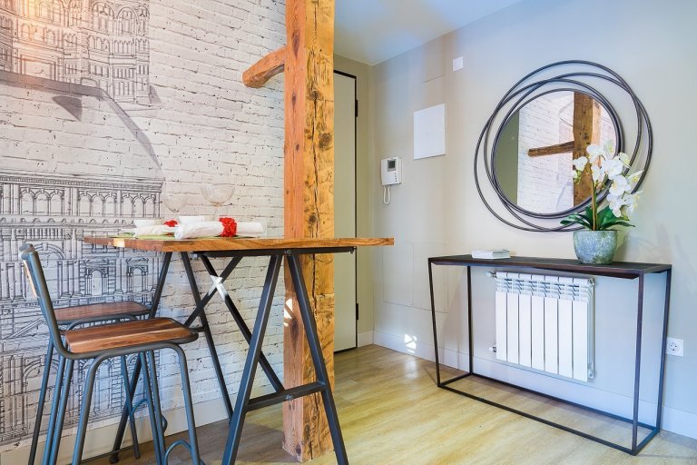 Kombinace geometrických tvarů, moderny a přírodních materiálů zní jako nereálné spojení. Ne však v malém bytě, který se nachází v samém srdci Madridu.