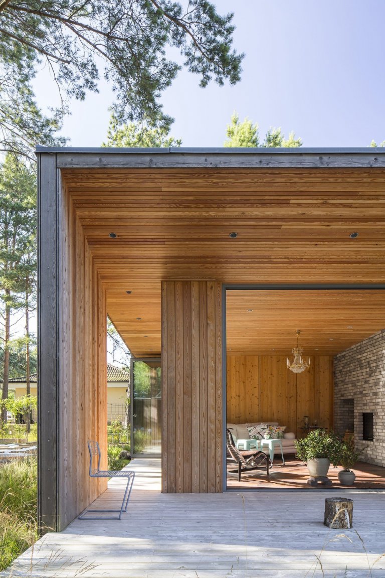 Přízemní budova se nachází co by kamenem dohodil od moře v jižním Höllvikenu na jihu Švédska. Tato oblast je bohatá na vysoké borovice a ani tento pozemek není výjimkou. Projekt se skládá ze tří budov: hlavní obytná část pro mladou rodinu, garáž a chata pro babičku. Umístění pozemku je v blízkosti lesa, moře a nedaleké přírodní rezervace. Ideální pro všechny, kteří chtějí úzký kontakt s přírodou. Navíc právě poloha domu uprostřed přírody významně ovlivnila celkový design domů. Fasády jsou ze sibiřského modřínu různých kvalit.