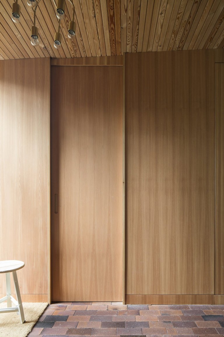 Cihlová podlaha dodává interiéru retro nádech, stejně jako kamenné kuchyňské desky, které jsou zakončeny dřevěným obložením po stranách kuchyňských skříní. Interiér je vlastně kombinací skandinávského retra a klasického skandinávského stylu. Největší službu dělá přirozené denní světlo, které proniká prosklenými stěnami do celého interiéru. Spojení s přírodou, sluneční paprsky a nedaleké moře dělá z domu úžasné místo pro život.