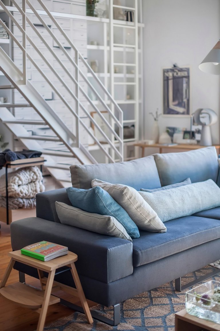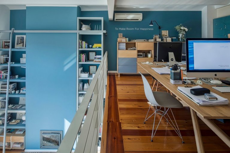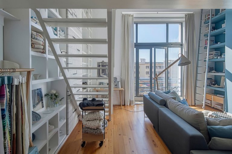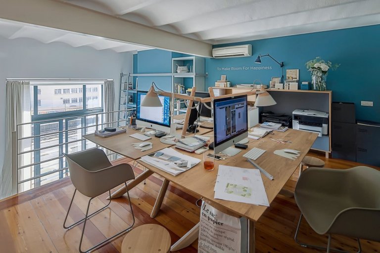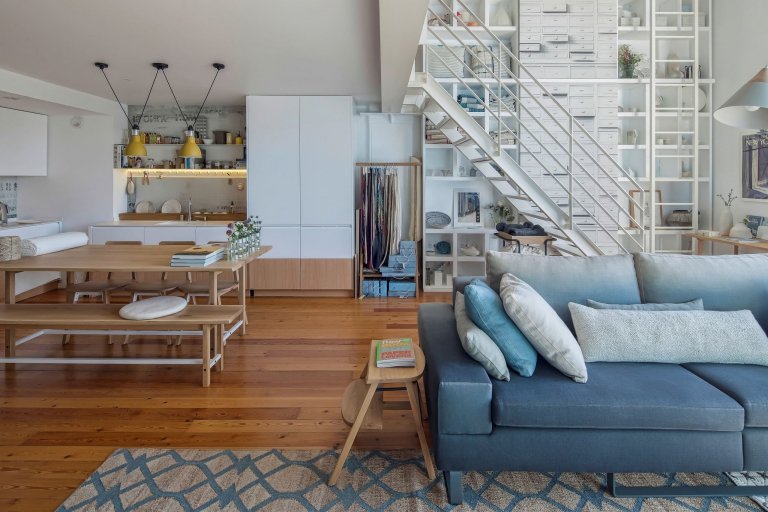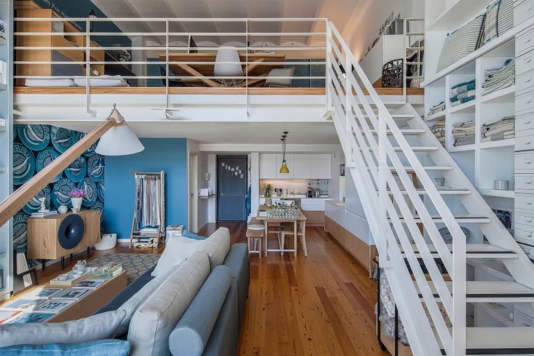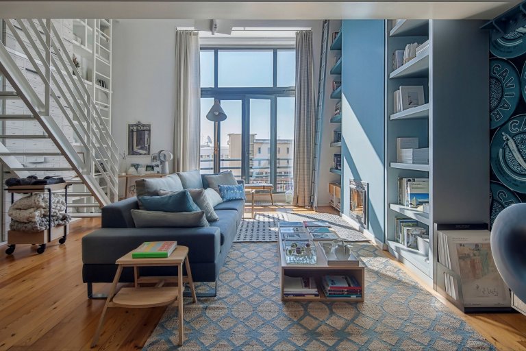 V historickém jádru Lisabonu se nachází dvoupodlažní podkrovní byt, který své majitelce, designérce interiérů, slouží jako ateliér. Na první pohled zaujme otevřeným prostorem, vysokými stropy i příjemně modrou barvou, která interiéru bytu vévodí. V kombinaci s bílou barvou a jemnými tóny dřeva tak vzniká opravdu inspirativní prostředí s přímořskou atmosférou.