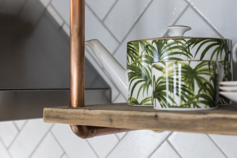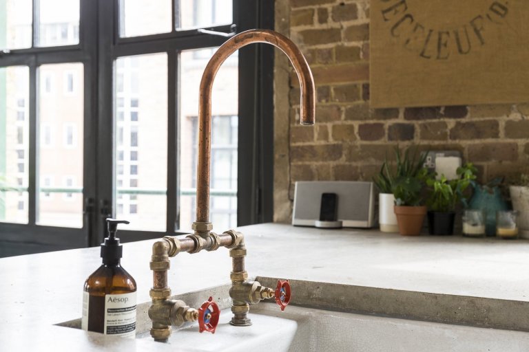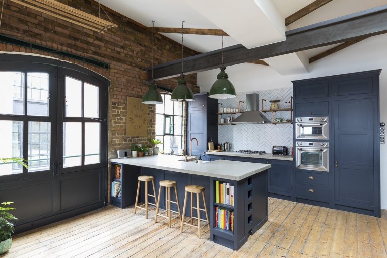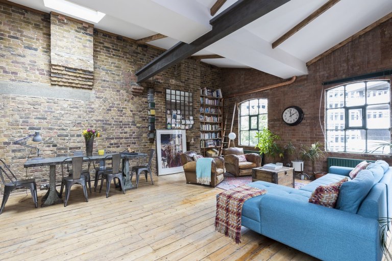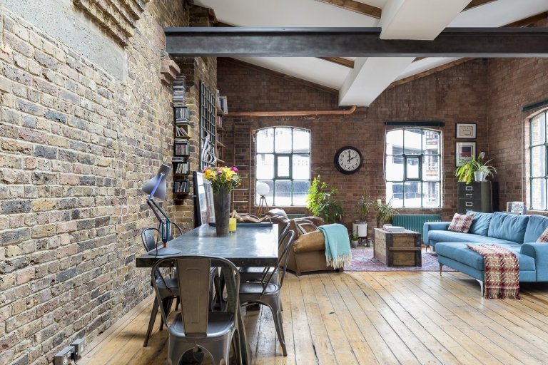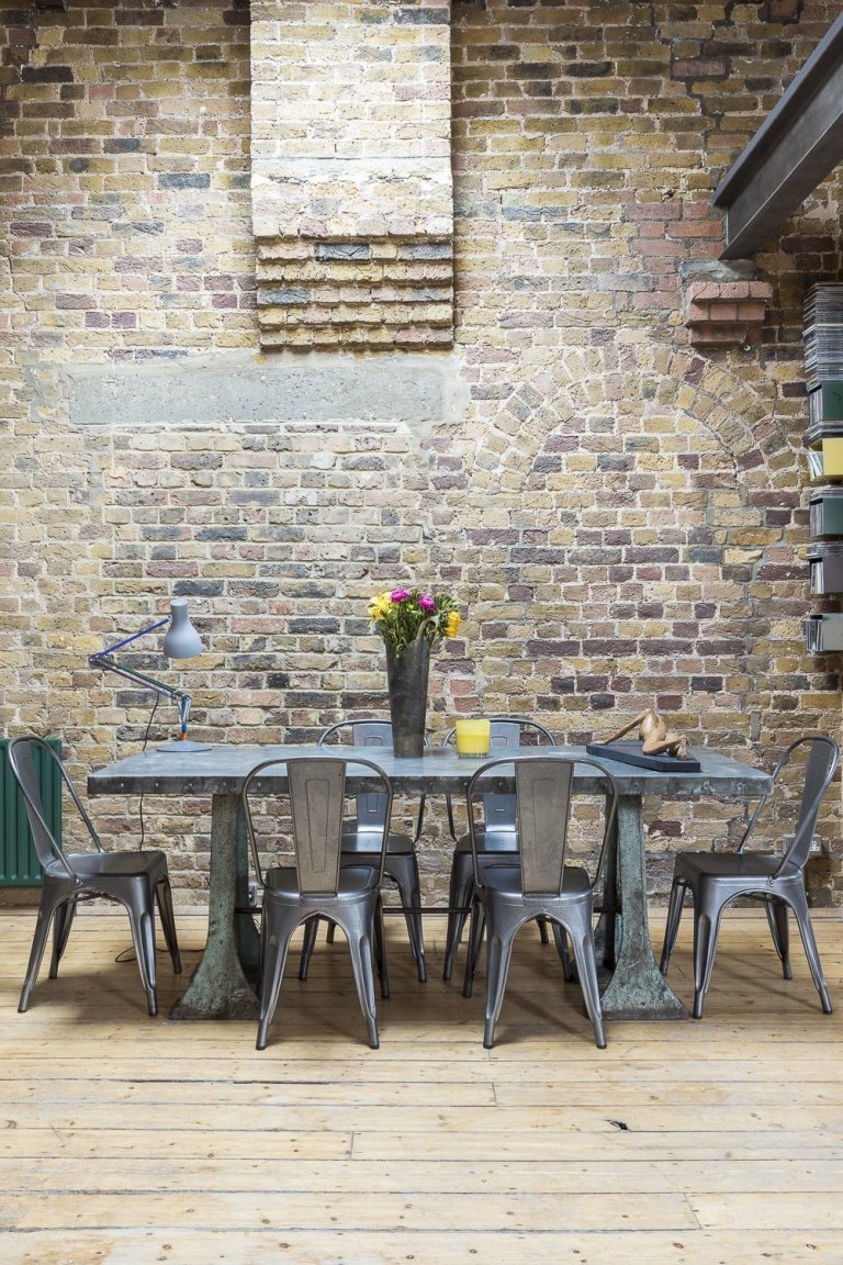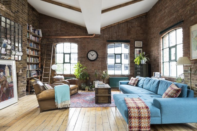 Podíváme se do Londýnské čtvrti Shoreditch, kde byl jeden takový průmyslový loft vytvořen. Pod křídla si objekt vzala společnost HouseUP a navrhla jeho kompletní rekonstrukci. Původní cihly i okna byly zachovány a repasovány. Stejně tak originální prkenná podlaha, která odráží historii tohoto místa. Kromě výrazné cihlové zdi, dominující celému prostoru, je zbytek zdí vymalován na bílo. Přiznané ocelové traverzy horizontálně oddělují prostor obývacího pokoje a kuchyně. V interiéru se také často opakuje použití masivního dřeva. Modrá sedačka, zelená průmyslová svítidla a mnoho kovových zařizovacích prvků. Vše je sladěno do posledního detailu. Industriální ráz se tomuto místu nezapře. Bronzové trubky na poličkách, baterie v kuchyni, nebo efektní žebřík na zavěšení ručníků zavěšený v koupelně. Cit pro detail je vidět na každém kroku. V koupelně použitá betonová stěrka působí čistě. Zvolené kachle s retro vzorem ve sprše tak díky malbě spíše vyniknou. Barevně i funkčně je celý interiér dotažen k dokonalosti a milovníci industry zde budou zajisté spokojeni.